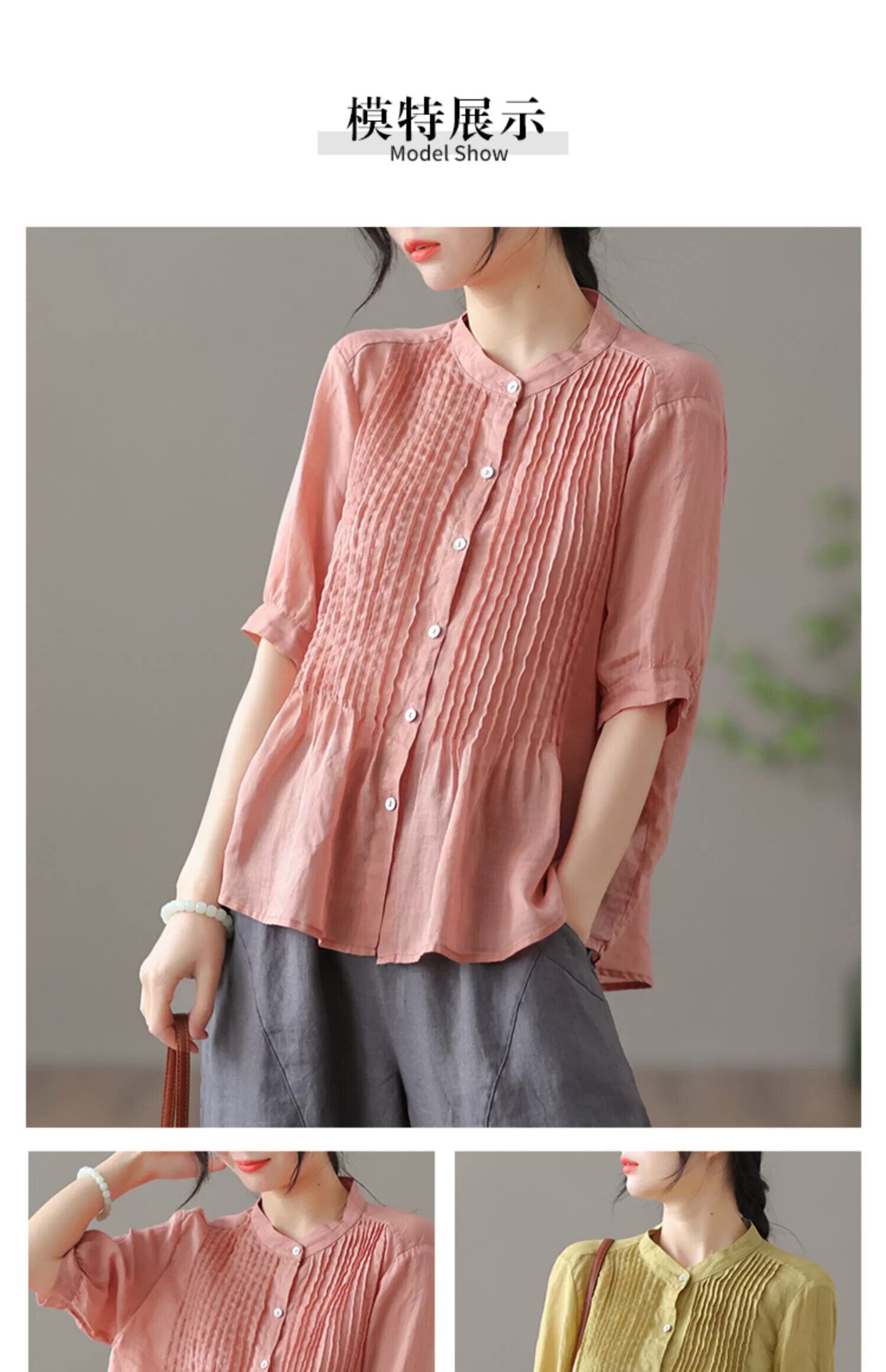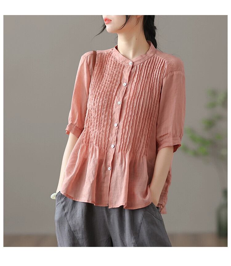 クリアランス漏れ〜カウンターは、ラベルがカットオフされた有名な女性用アコーディオンプリーツラミーシャツ、ゆったりとしたコットンリネンの半袖トップスを回収しました sine29624969607