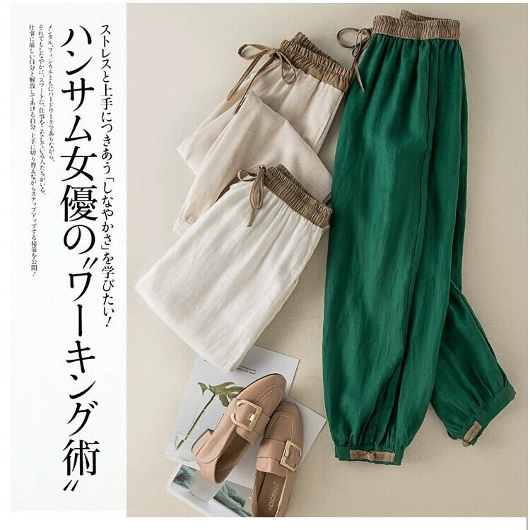 リークをピックアップ〜eseスタイルのオリジナルシングルコットンリネンブルマレディース、ゆったりとした大きいサイズの巾着カジュアルレギンス、9点リネンハーレムパンツ 大きめサイズ ショーツ ブルマー sine98322102149