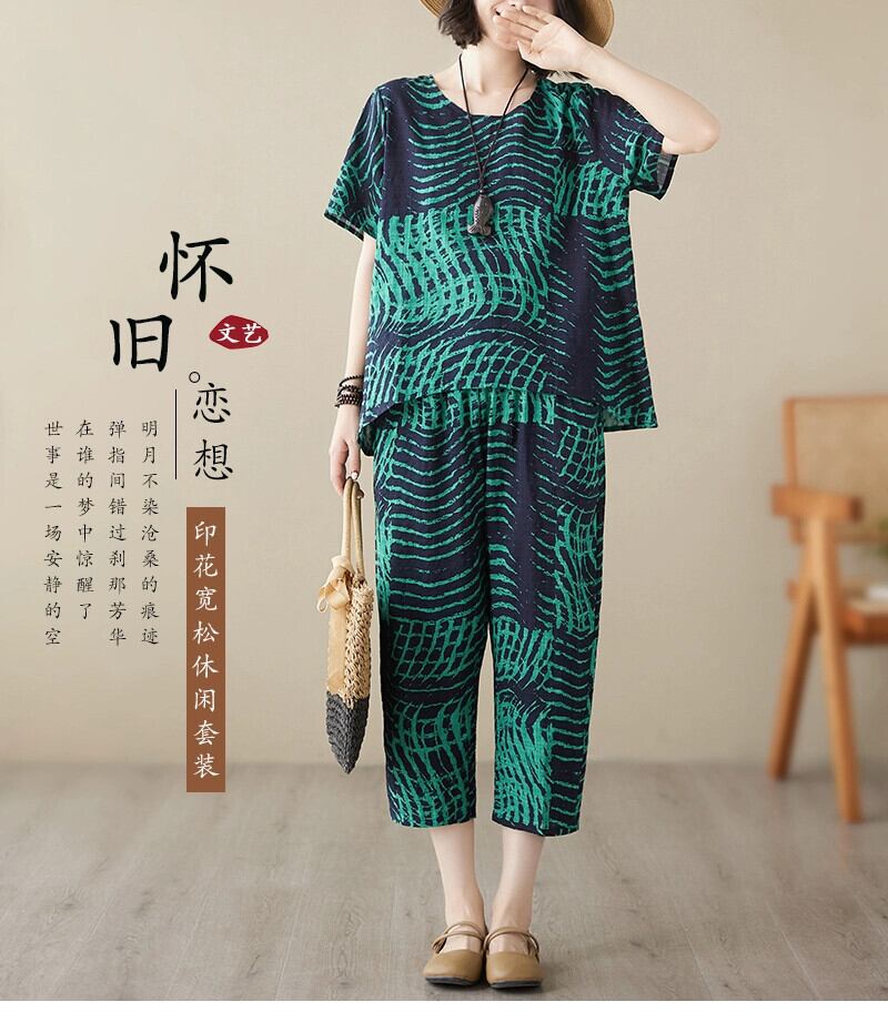 大手ブランドテールグッズ綿麻2点セットレディース半袖トップスTシャツ七分丈ハーレムパンツスーツ夏のクリアランスカウンター撤去 コットン サマー 夏物 sine22131983179