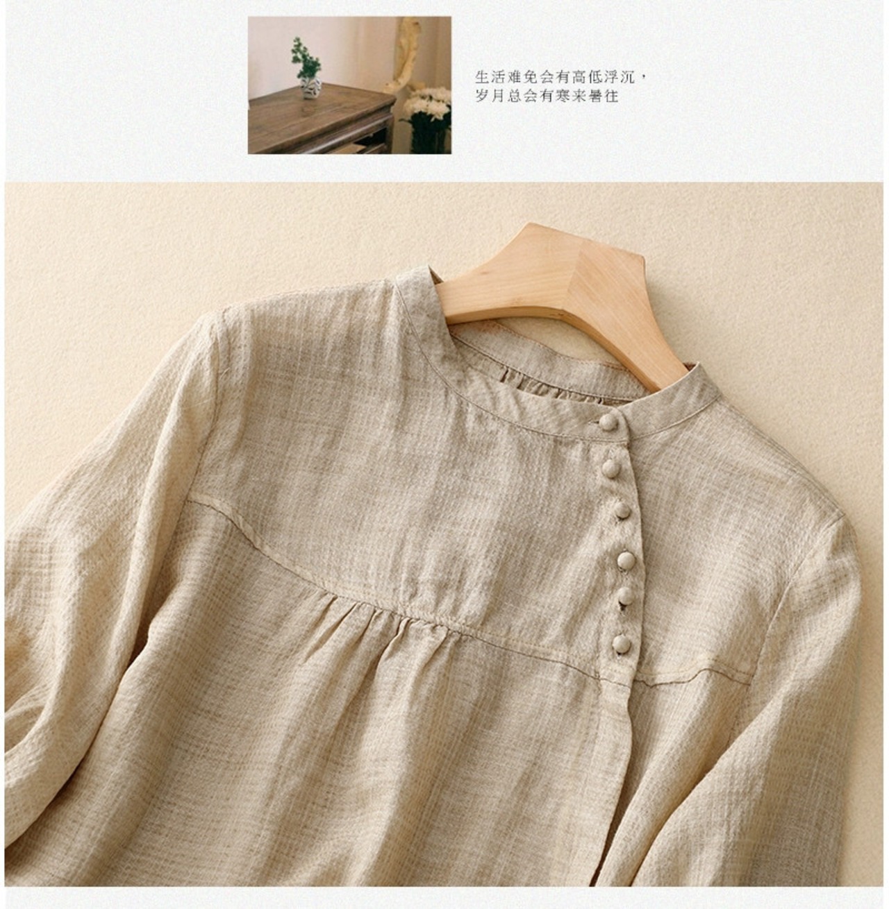 eign trade 割引ブランドテールグッズレディースレトロリネン半袖シャツ夏ルーズレースアップコットンとリネンの七分袖トップ サマー 夏物 sine53806191527