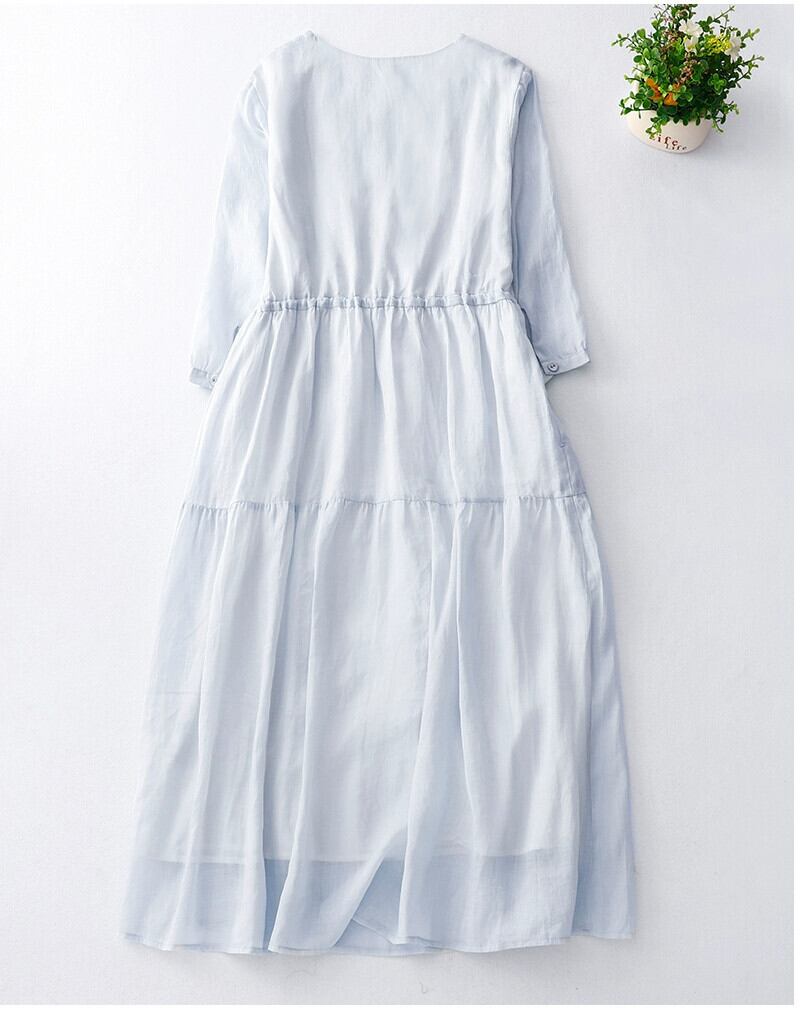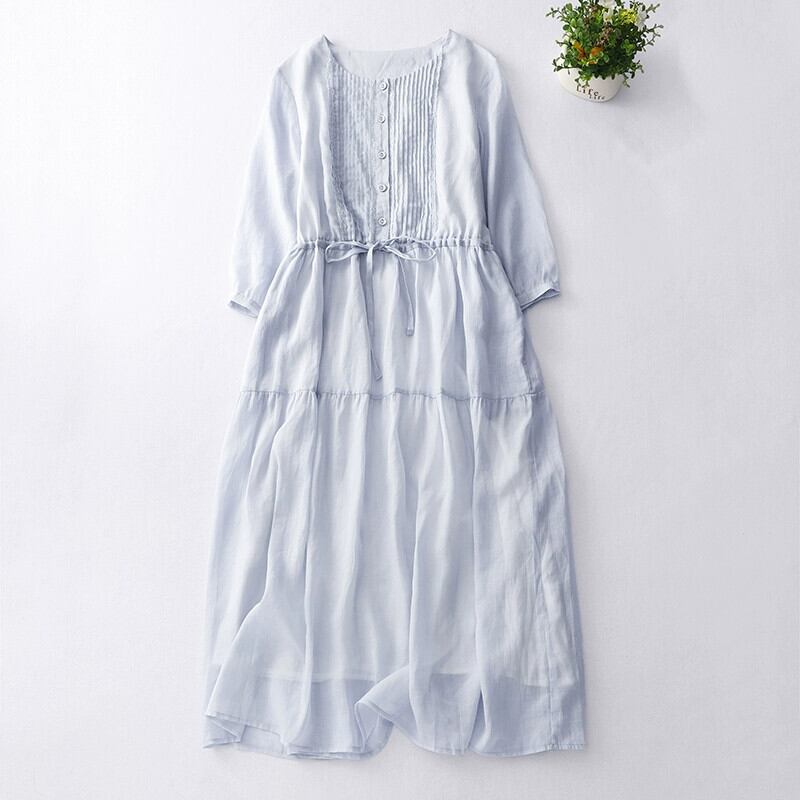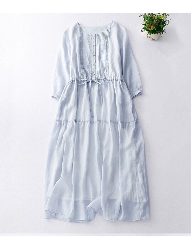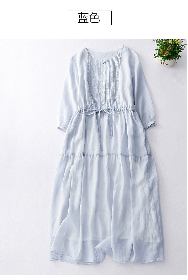 カウンタークリアランスセールの女性のエストスタイルアコーディオンプリーツラミードレス、ウエストドローストリングコットンとリネンのフルスカート sine47073417928
