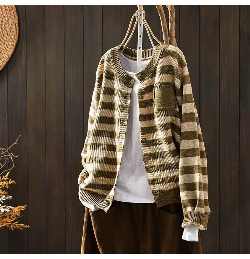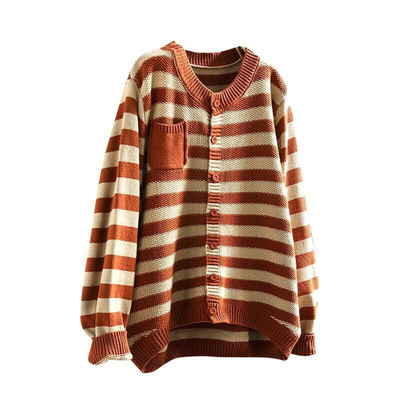 eign trade ese オリジナルハイエンドブランドの女性のレトロな対照的なセータージャケットルーズ痩身カジュアルカーディガンセーター sine75042809922
