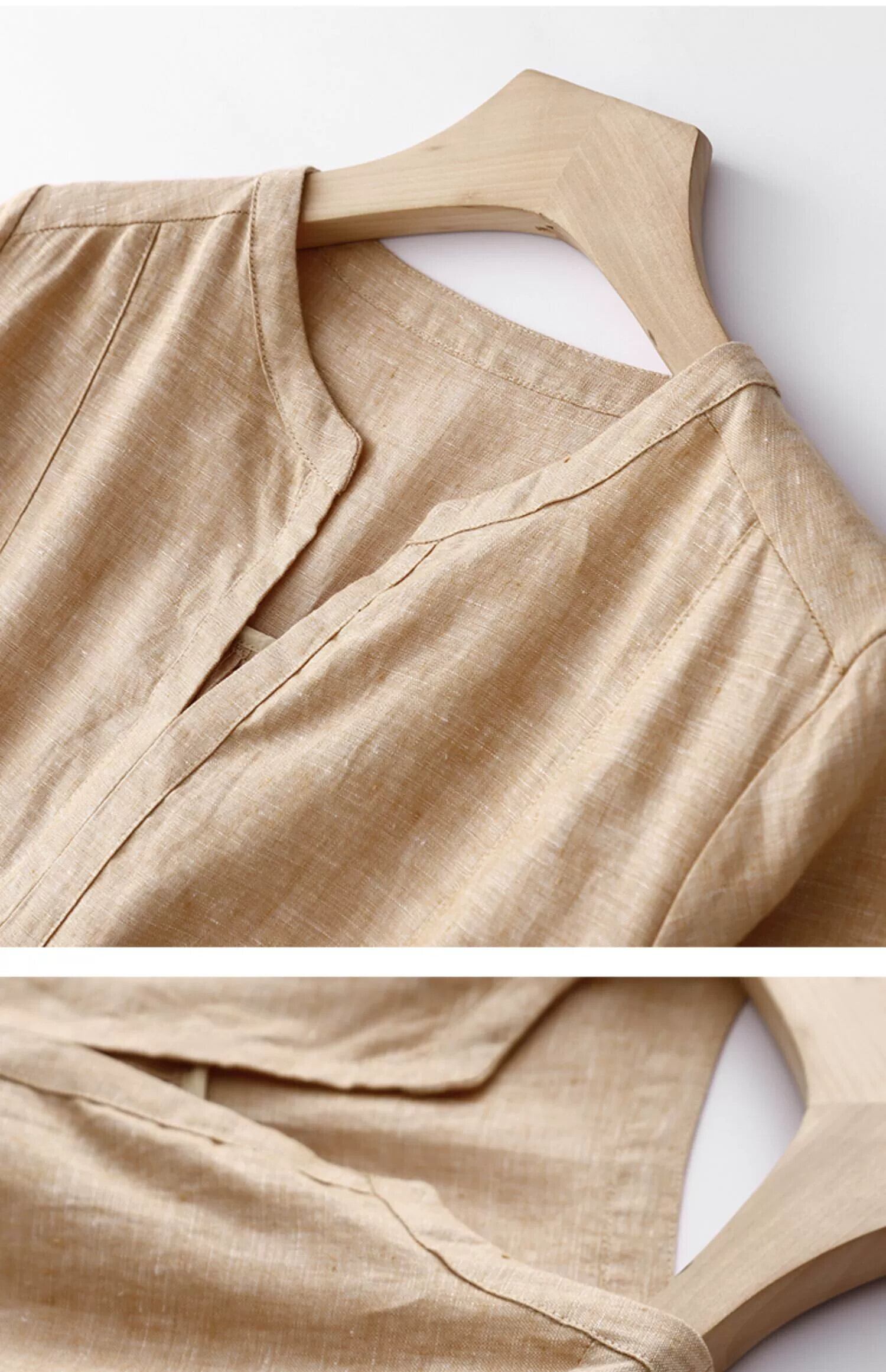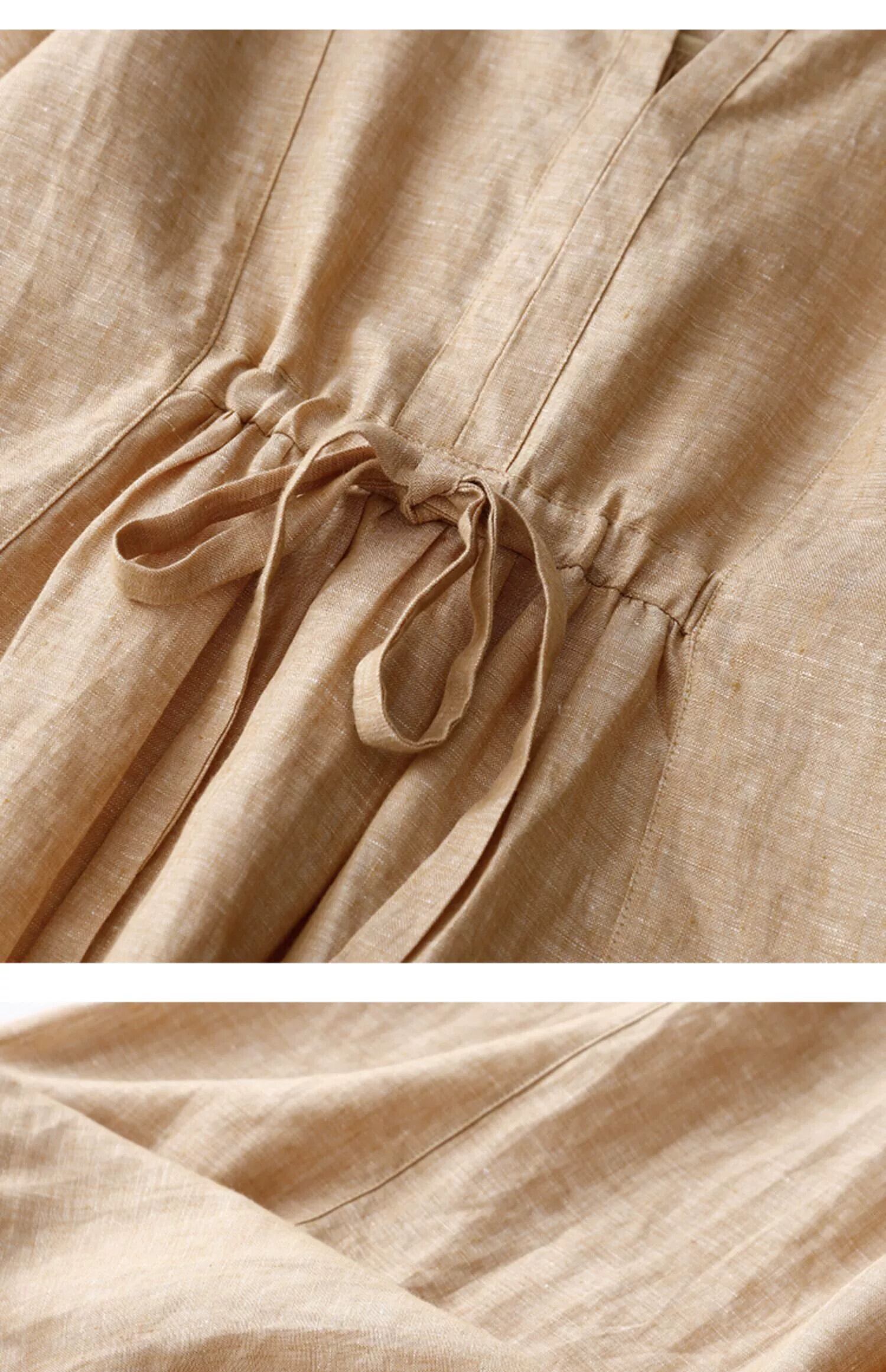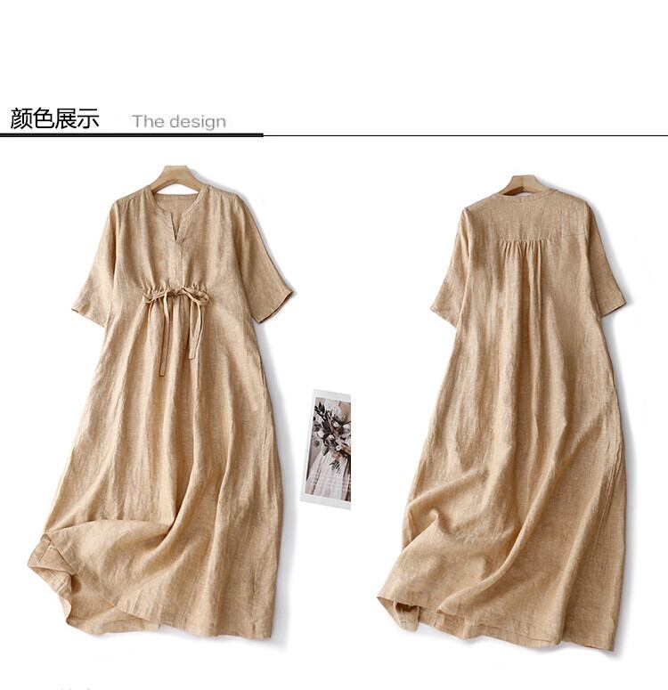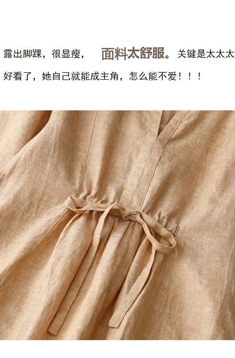 ディスカウント ストア ショッピング モールの女性の綿とリネンのドレス、ウエスト タイ V ネック リネン A ライン ロング スカート コットン Vネック Aライン sine51553918953