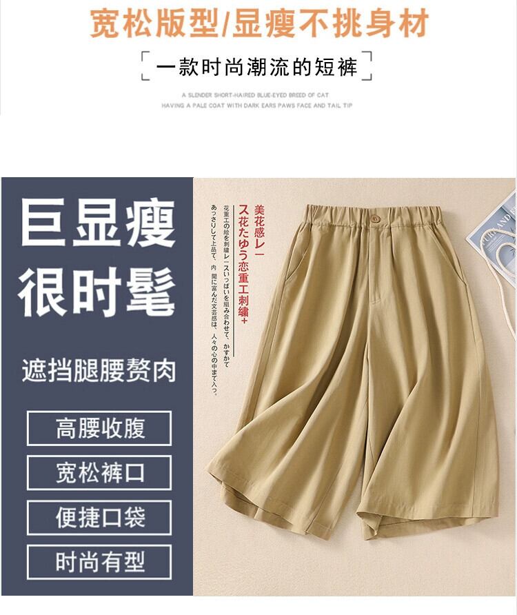 Eign Trade Export Big Tail Goods キャビネットから削除されました ese 純粋な綿の 3 分丈ワイドレッグパンツ女性ルーズハイウエストストレートカジュアルパンツ コットン ピュア sine43340783172