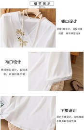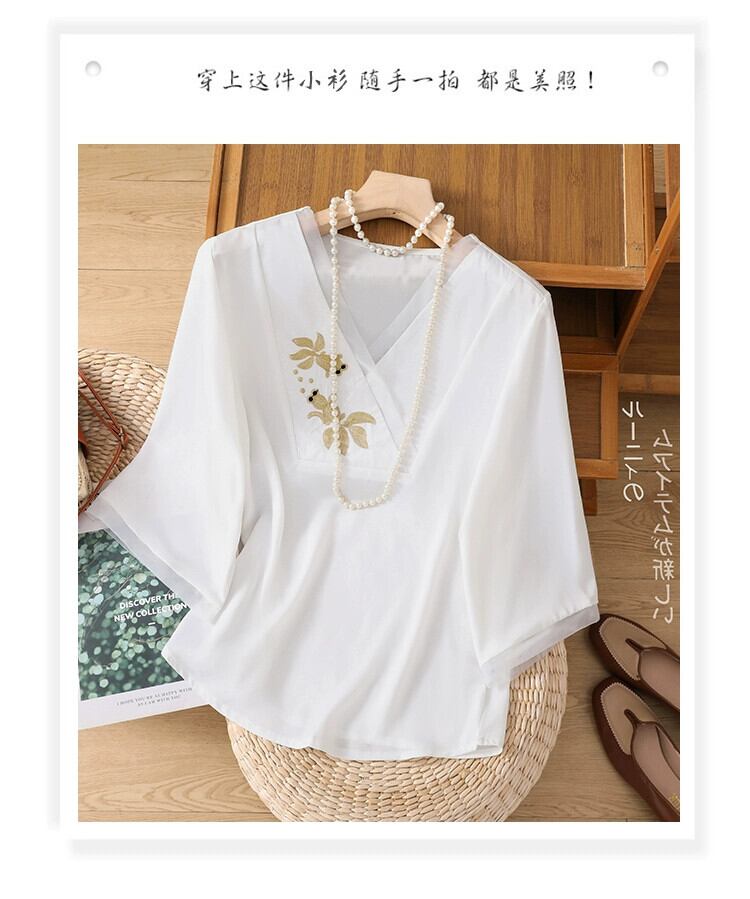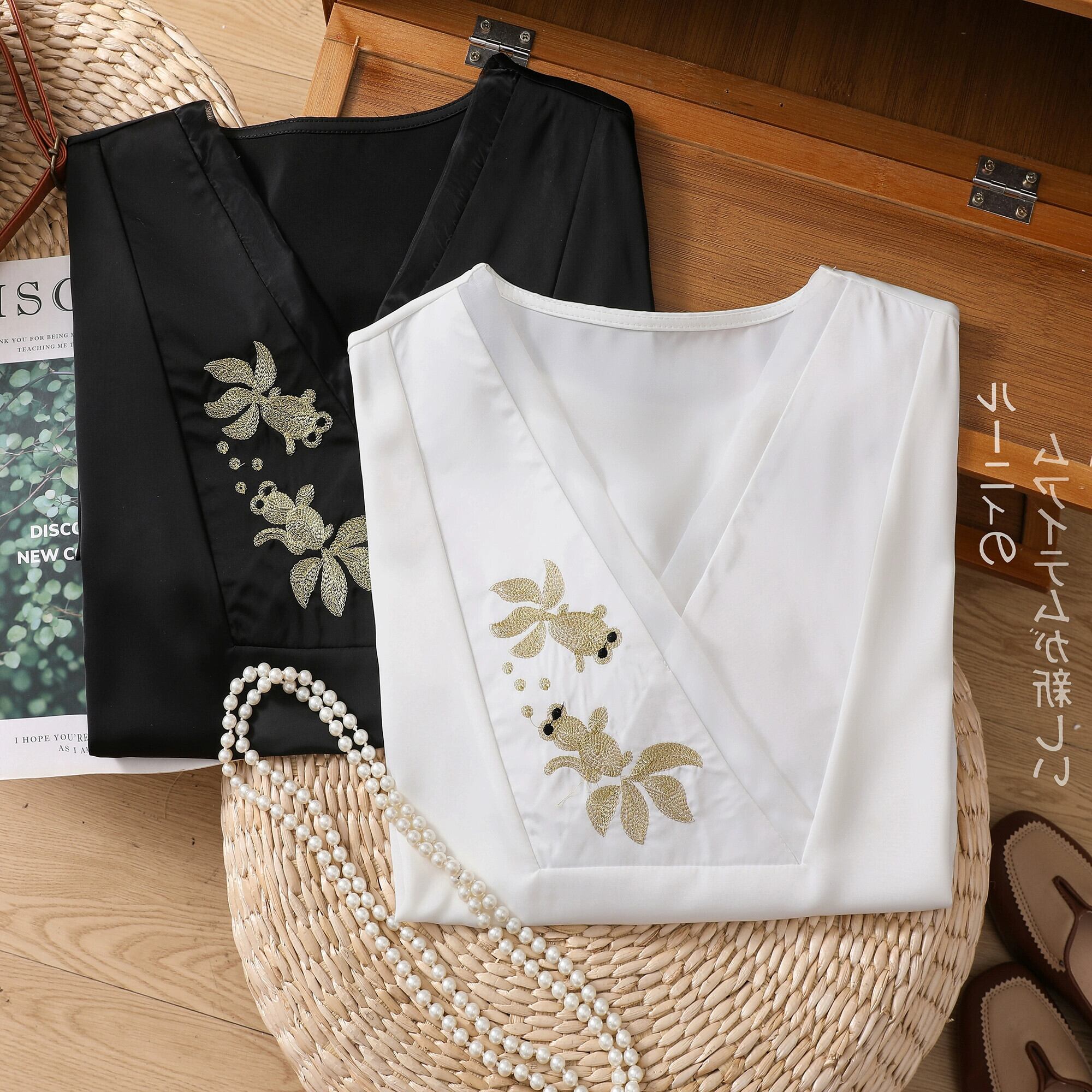 ディスカウントストアショッピングモール中国風刺繍禅トップ女性の夏ルーズカジュアル V ネック半袖シャツ レッド サマー 夏物 Vネック sine48681781815