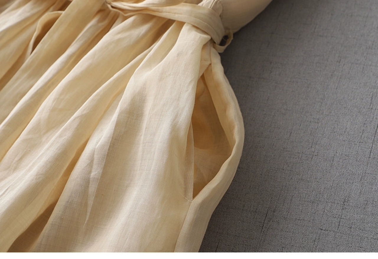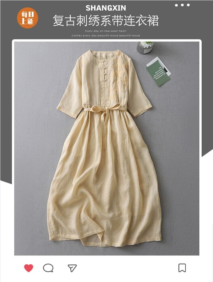 ディスカウント ストア ショッピング モールの女性のレトロな刺繍入りコットンとリネンのドレス ルーズ レースアップ リネン A ライン ミドル丈スカート レッド Aライン sine96910158716