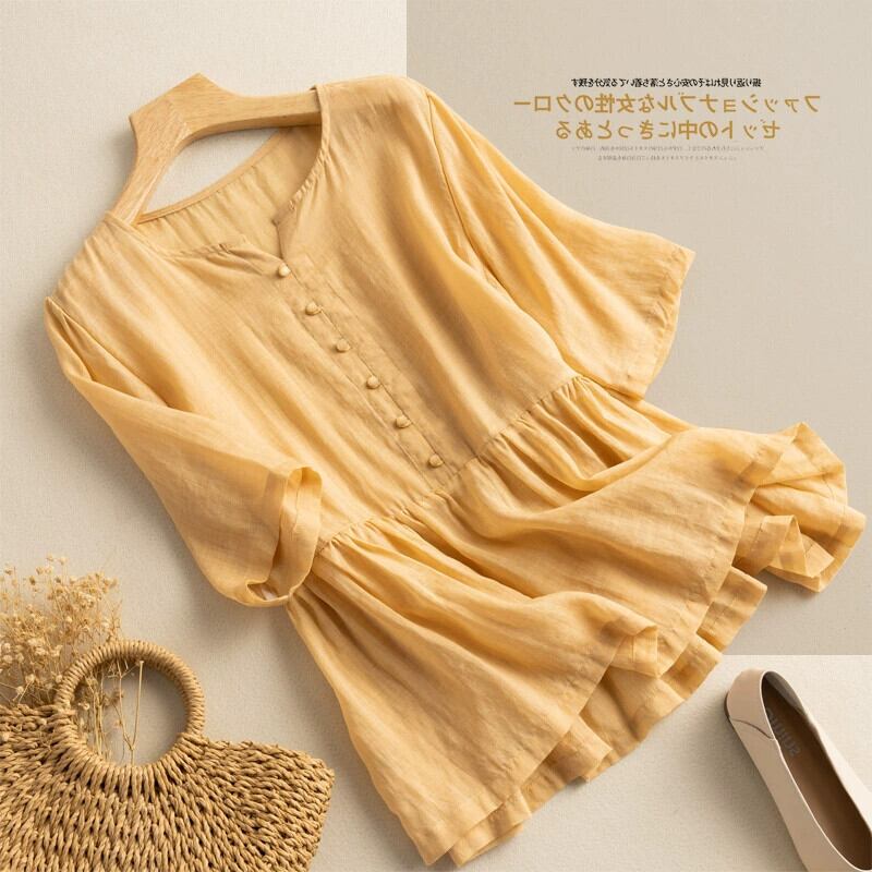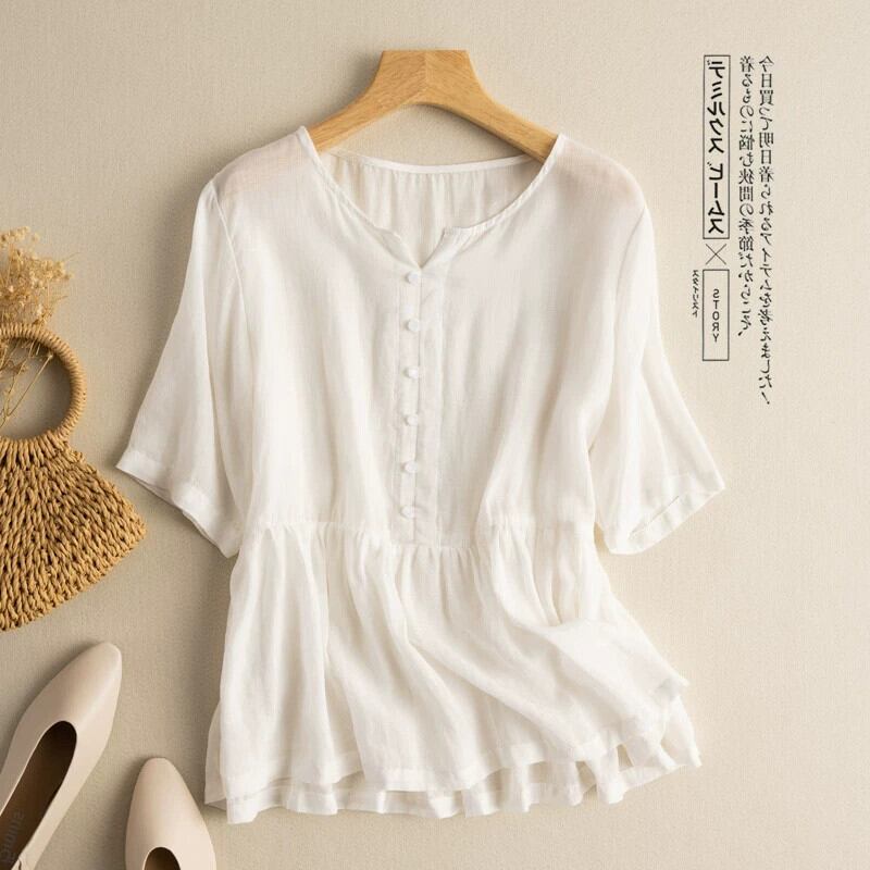 eign trade イタリアブランド テールグッズ カットレーベル レディース コットンリネン 半袖シャツ カジュアル 文学 ラミードールシャツ 薄手トップス sine61240750131
