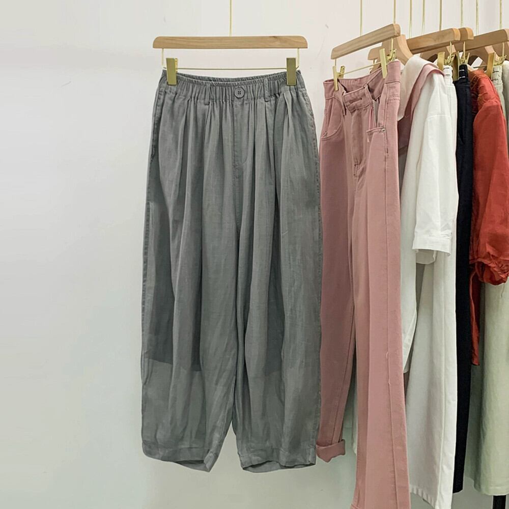 クリアランス漏れ〜リネン9点カジュアルパンツの女性のカウンター除去、芸術的なルーズハイウエストライトコットンとリネンのハーレムパンツ sine32922329800