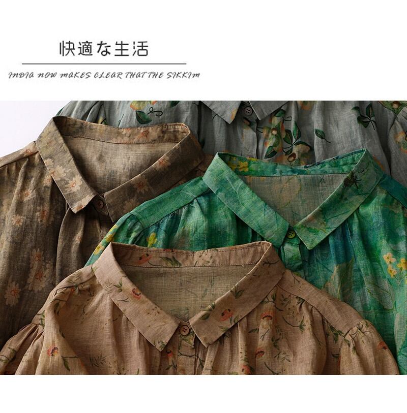 Eign Trade Export Big Tail Goods レディースクリアランスラミープリント半袖シャツルーズ通気性のあるコットンとリネンのパフスリーブトップ sine92884393076