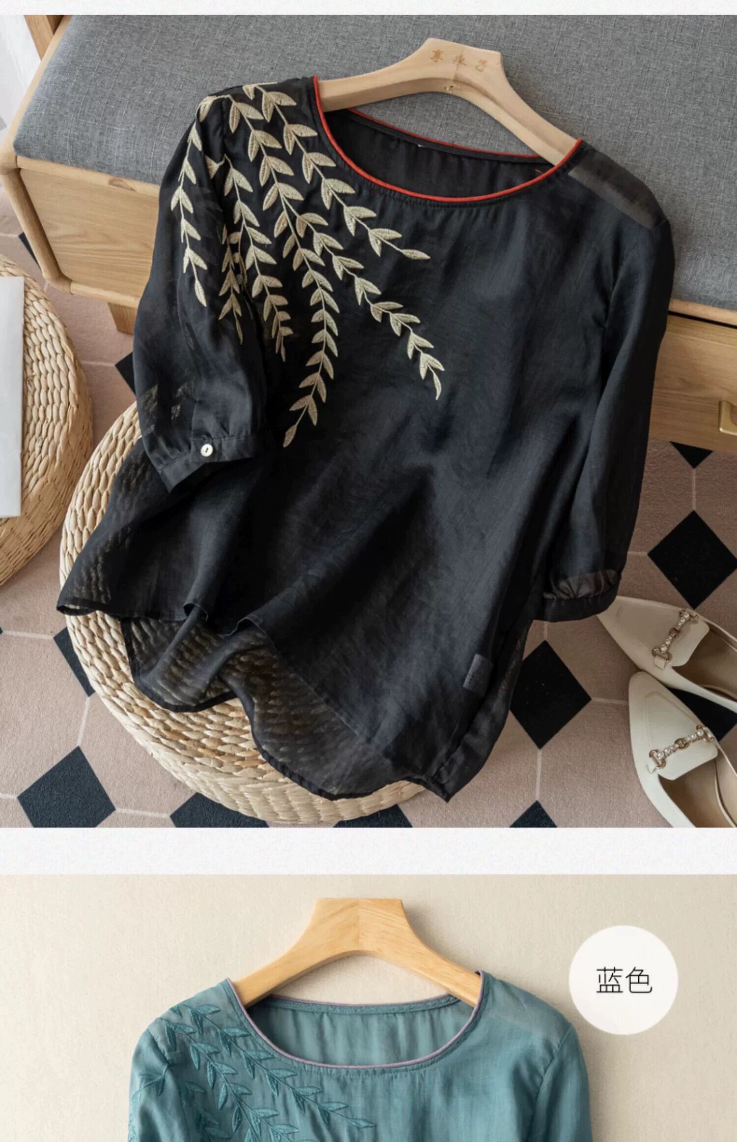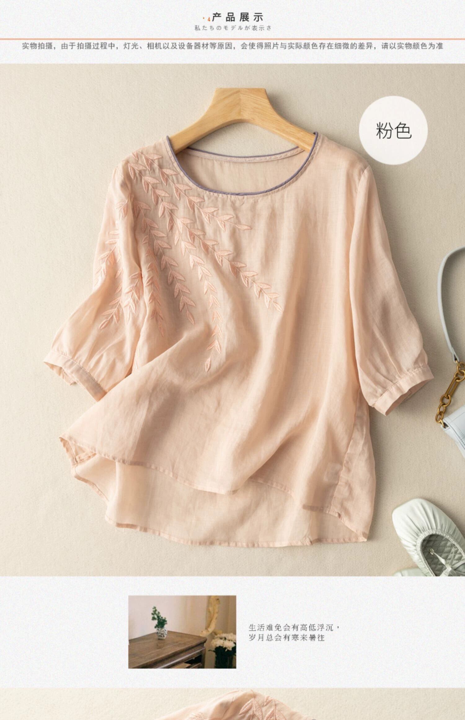 カットラベルショッピングモール撤退レディースラミー半袖薄手のトップレトロ刺繍ルーズコットンリネンリネンシャツ Tシャツ sine8834774929