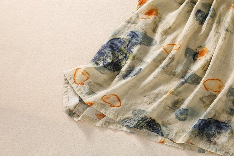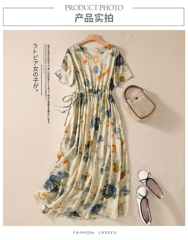 eign trade 割引ブランドテールグッズレディースレトロラミープリントドレスウエストレースアップコットンとリネン大きな裾 A ラインロングスカート Aライン sine39098270235