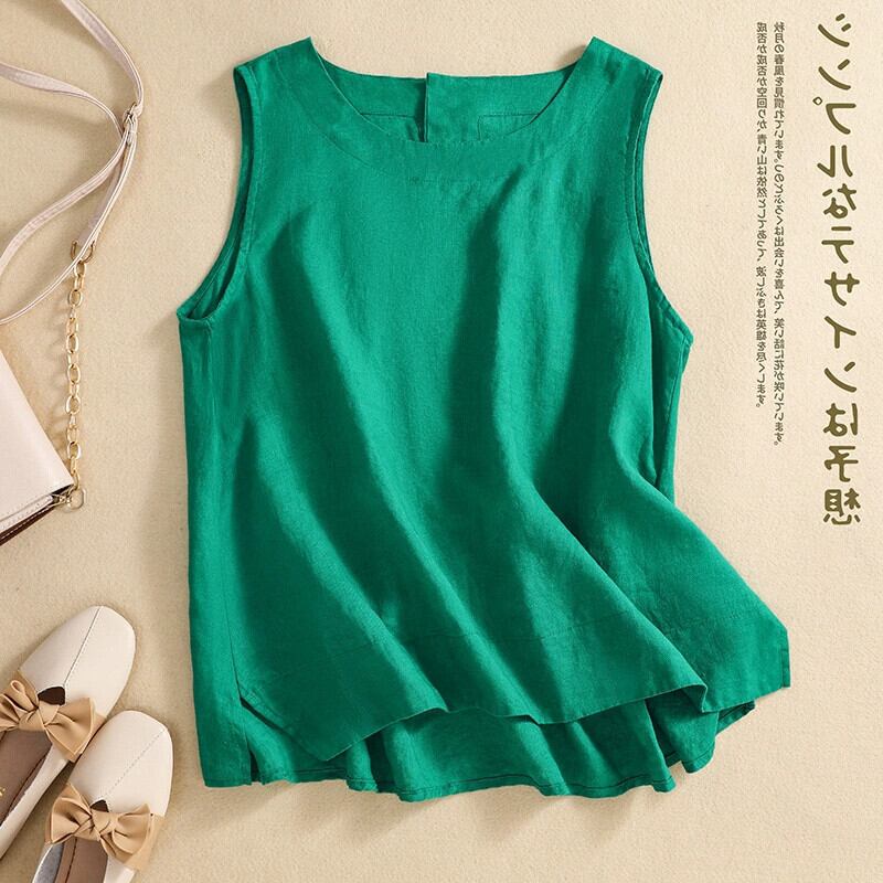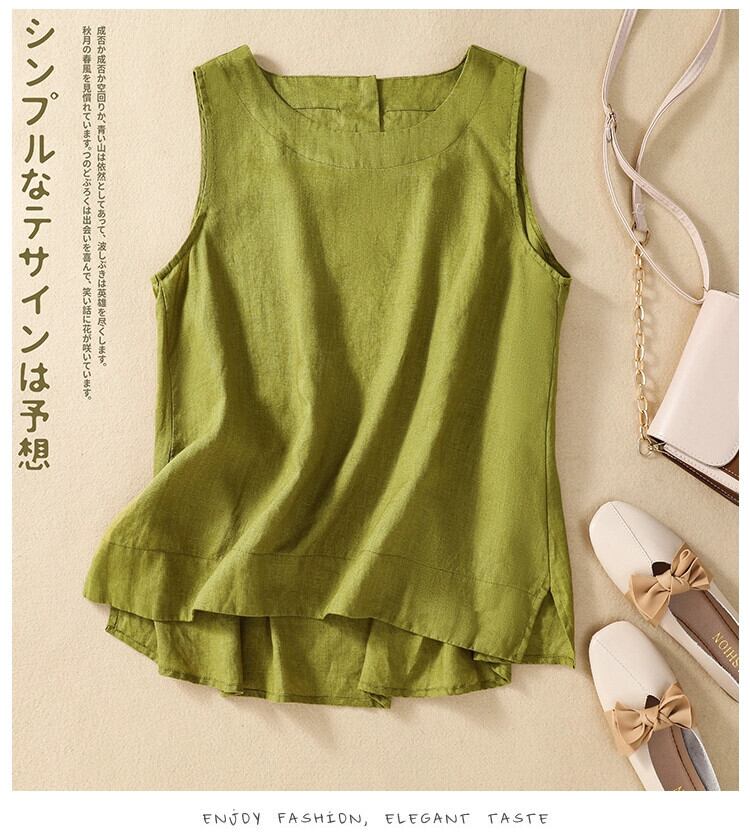 eign trade ese ビッグネーム カット ラベル レディース コットンとリネン タグ ベスト レディース ソリッド カラー 薄手 スタイル スリミング インナー リネン ノースリーブ トップ ソリッドカラー sine96077713181