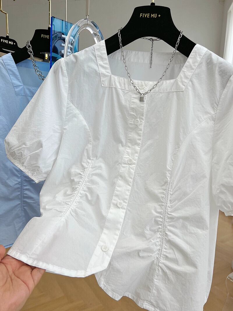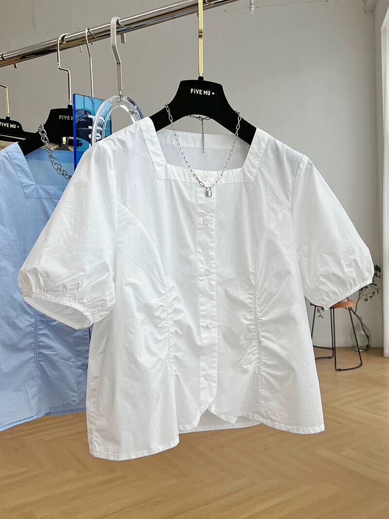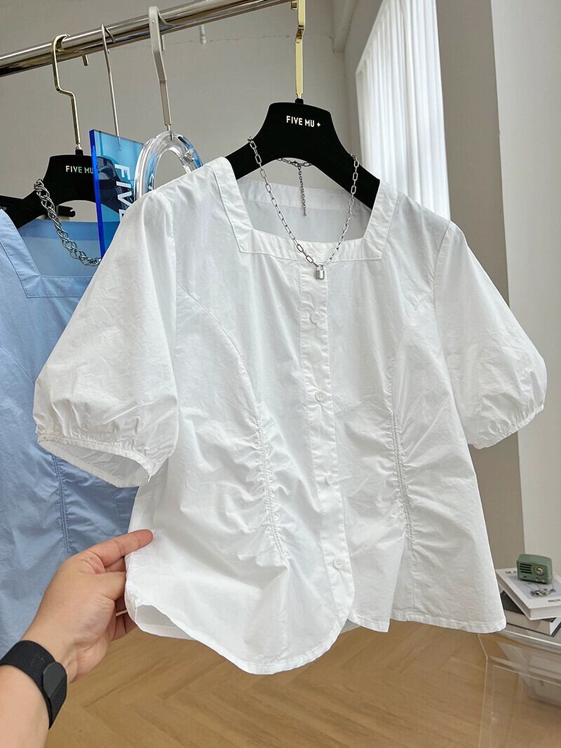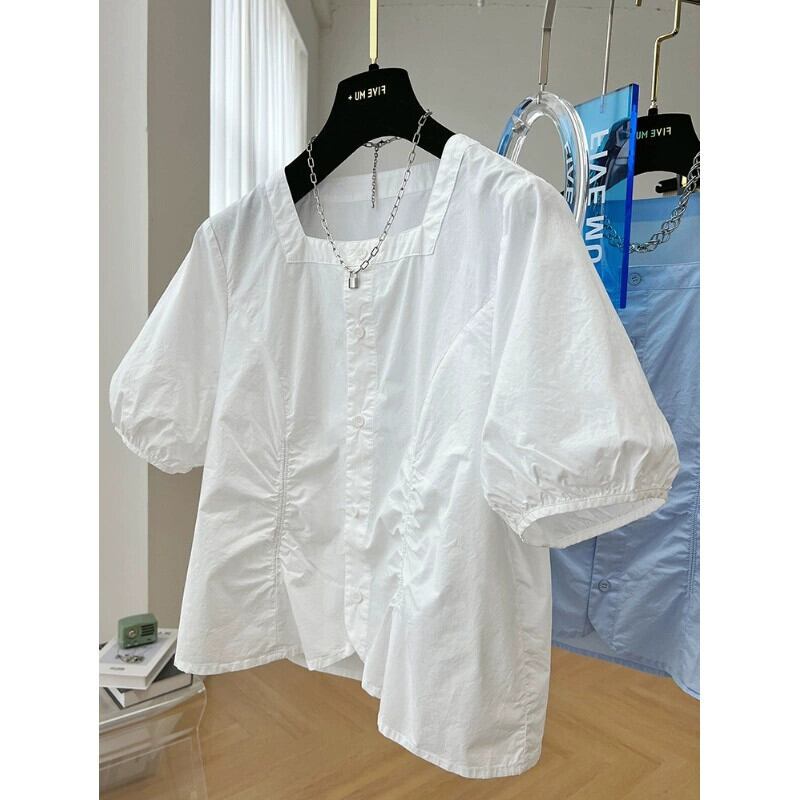 クリアランスリーク〜eseオリジナルファッションファッショナブルなスクエアネックベビードールトップニッチデザインパフスリーブシャツ スクウェア sine89607488443