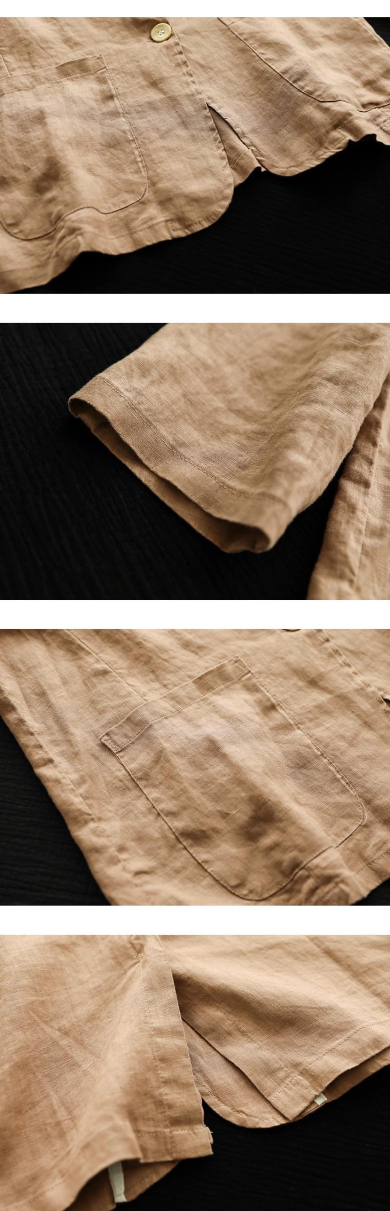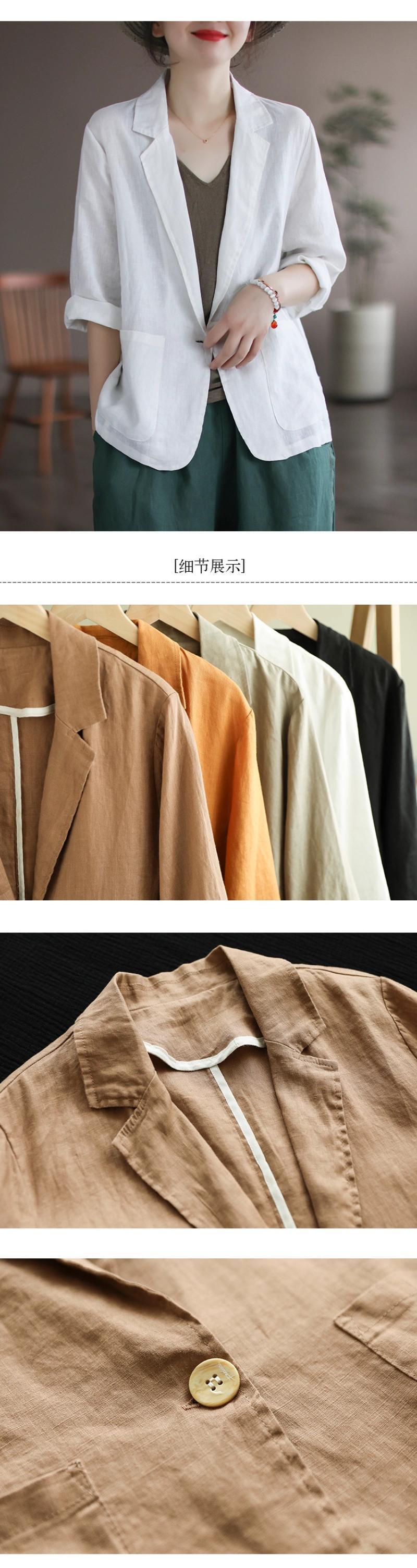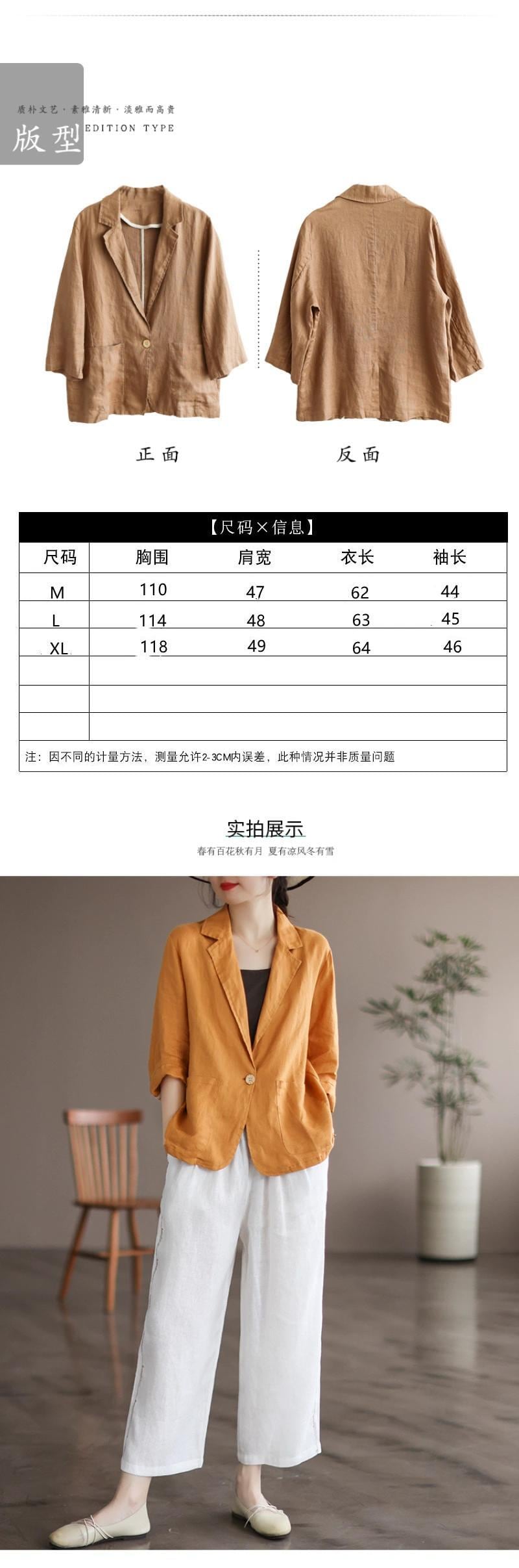 Eign Trade 輸出ブランドテールグッズ女性のレトロリネン小さなスーツジャケットカジュアル七分袖スーツ襟綿とリネントップ コットン sine17714351398