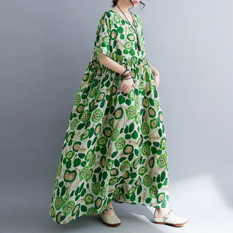 クリアランスカウンター最終在庫レディースエスニックスタイルプリントドレスルーズ大きいサイズコットンとリネン大きな裾Aラインスカート 大きめサイズ sine56201319461