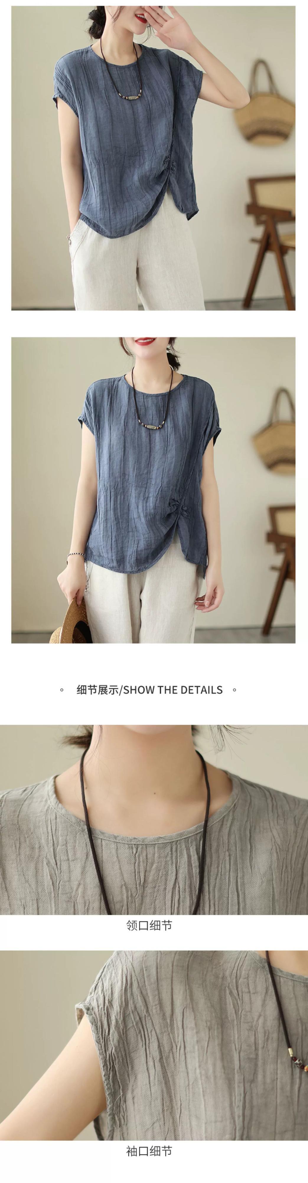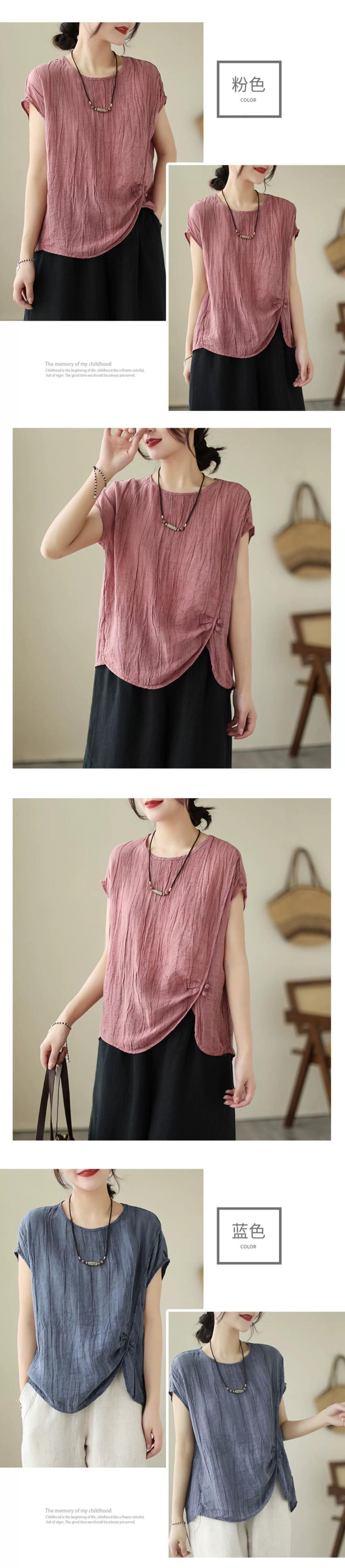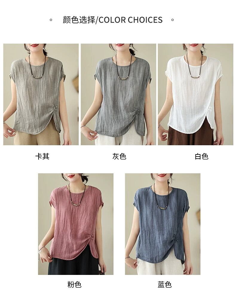 Eign Trade Export Big Tail Goods 撤退レディースレトロリネンシャツトップルーズで軽いコットンとリネンの半袖Tシャツ sine56302865196
