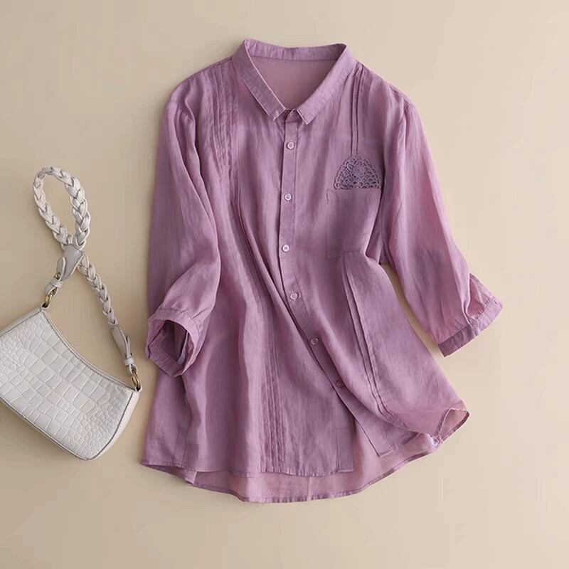 クリアランスリーク ~ カウンター最後の在庫 レディース ソリッドカラー 多用途 プリーツ リネン シャツ ルーズ 7 分袖 コットンとリネン トップ 夏 サマー 夏物 sine34547110990