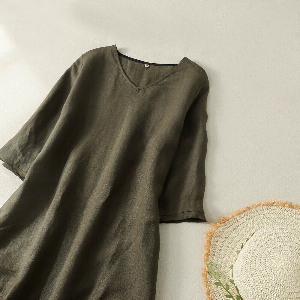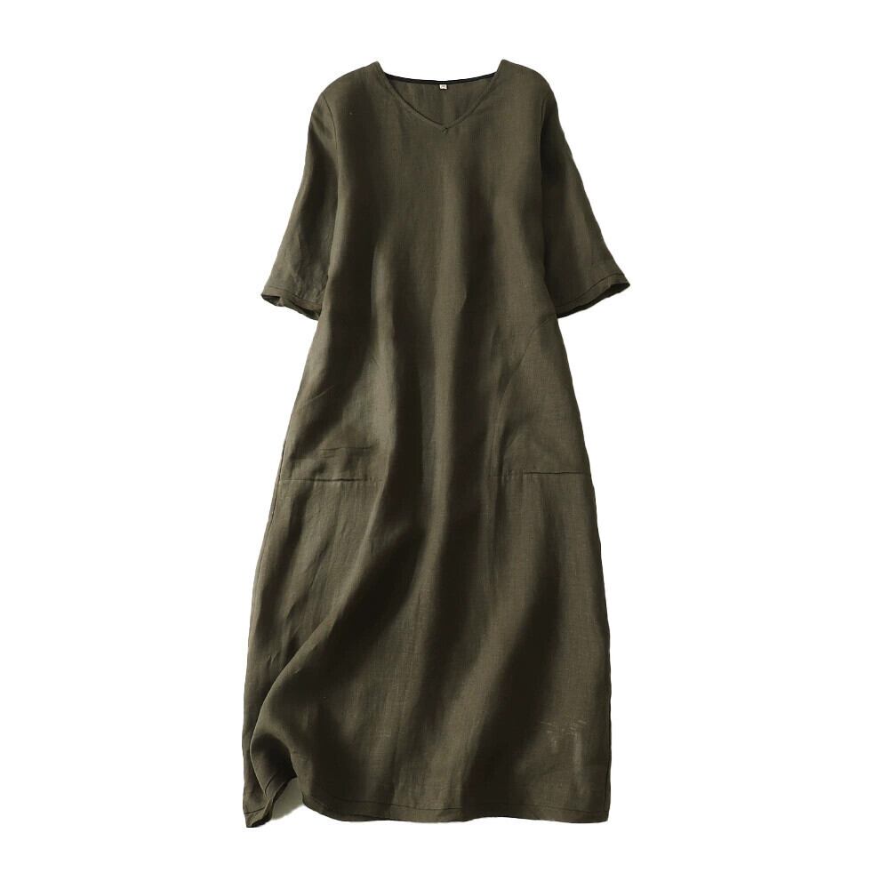 モールビッグネーム撤退最終在庫リネン半袖ドレス女性の夏ルーズ痩身綿とリネン A ラインロングドレス コットン サマー 夏物 Aライン sine15255279089