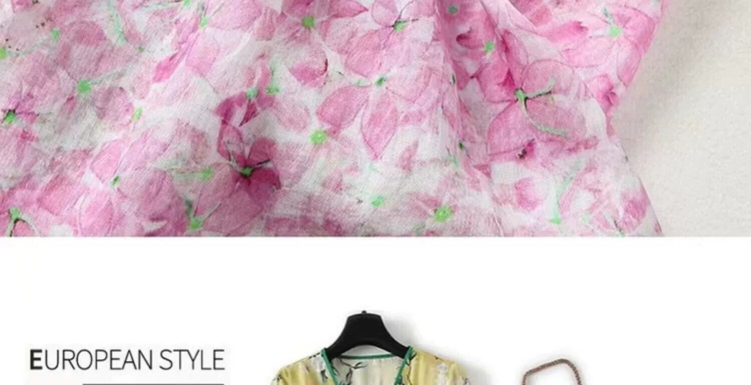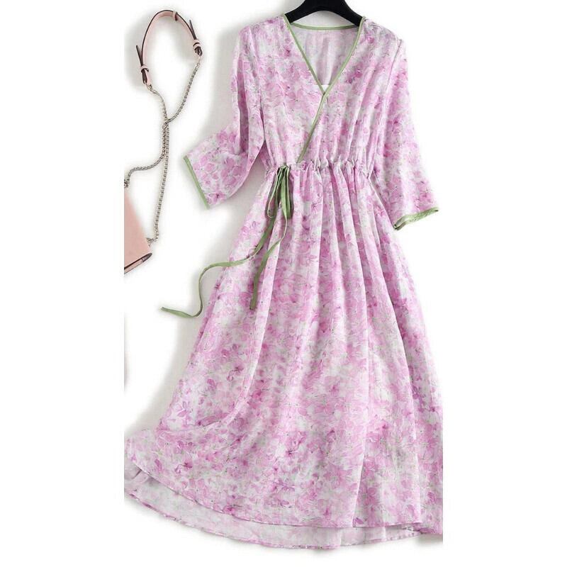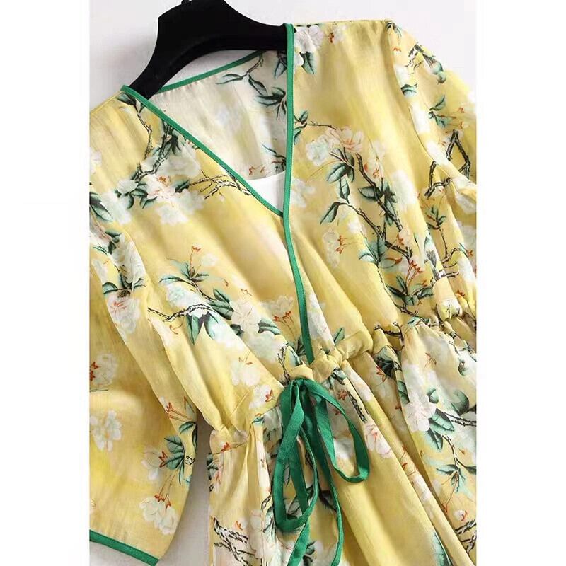 カウンタークリアランスセールのレディースVネックラミープリントドレス、ウエストレースアップコットンとリネンの大きな裾のAラインスカート sine82709179998