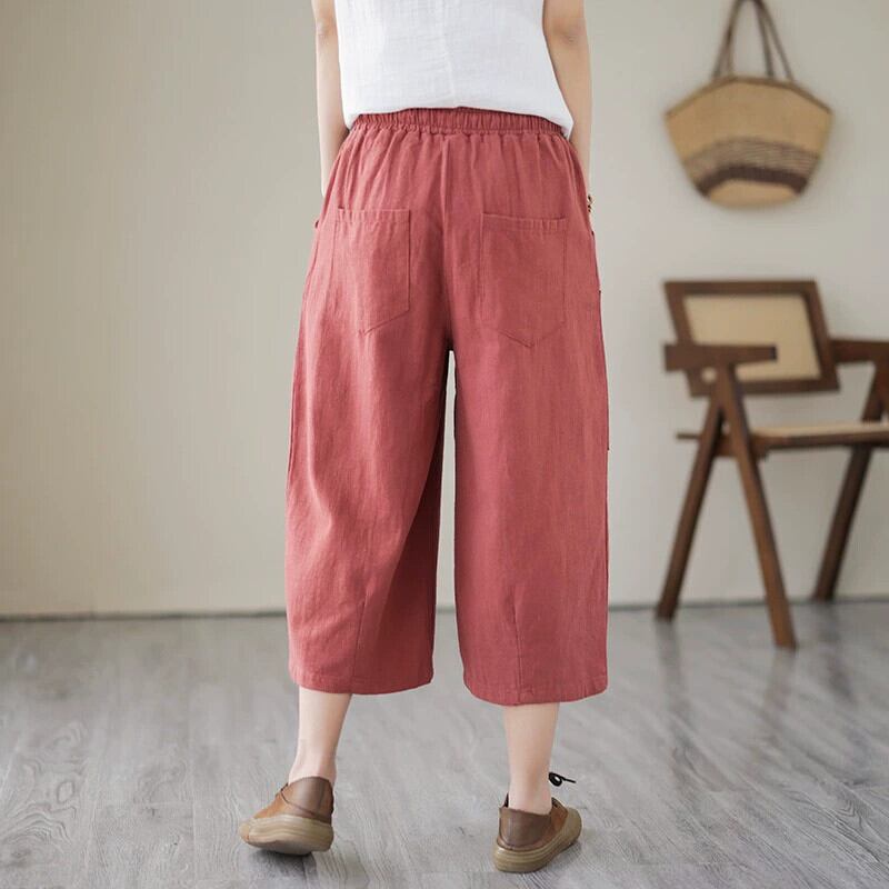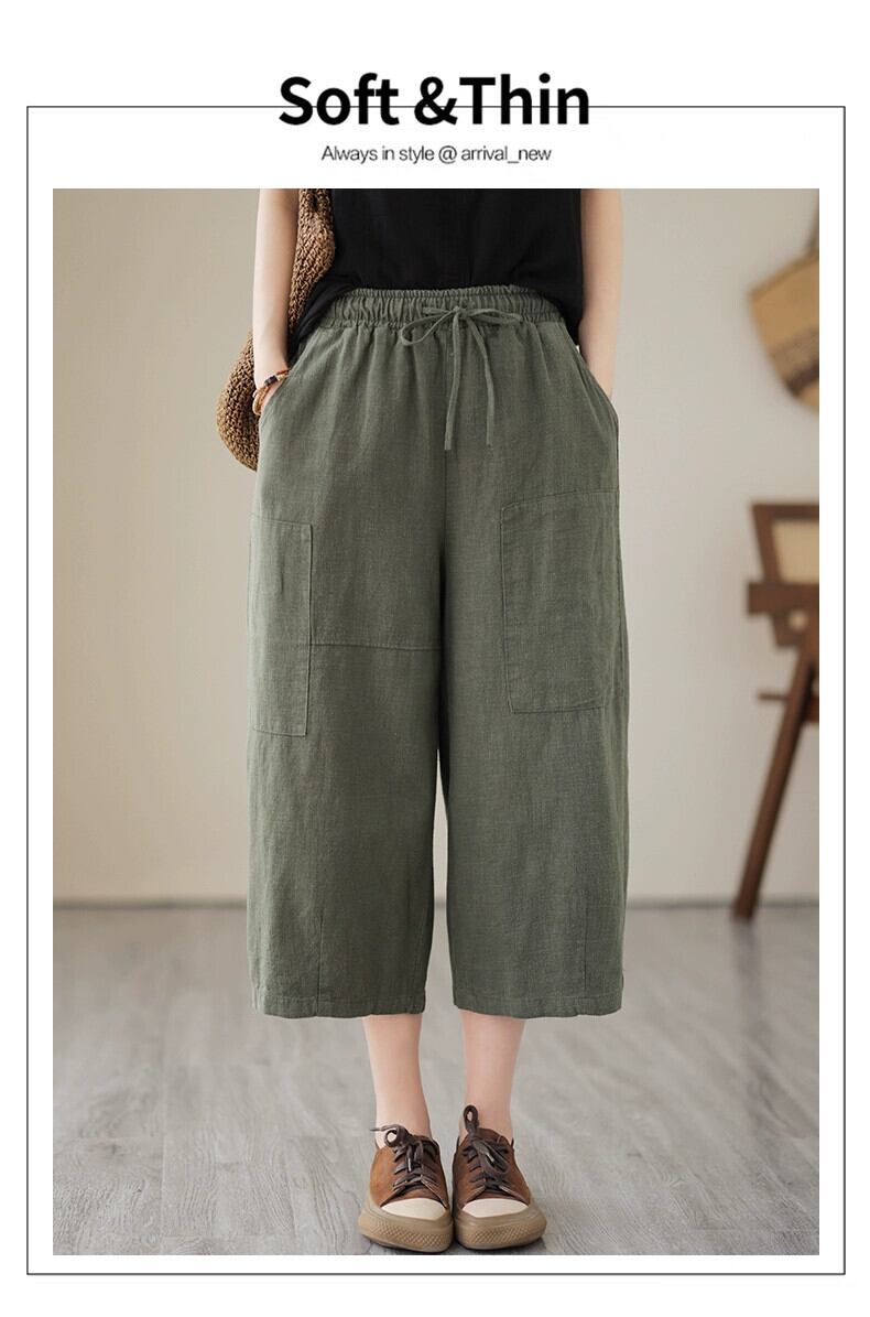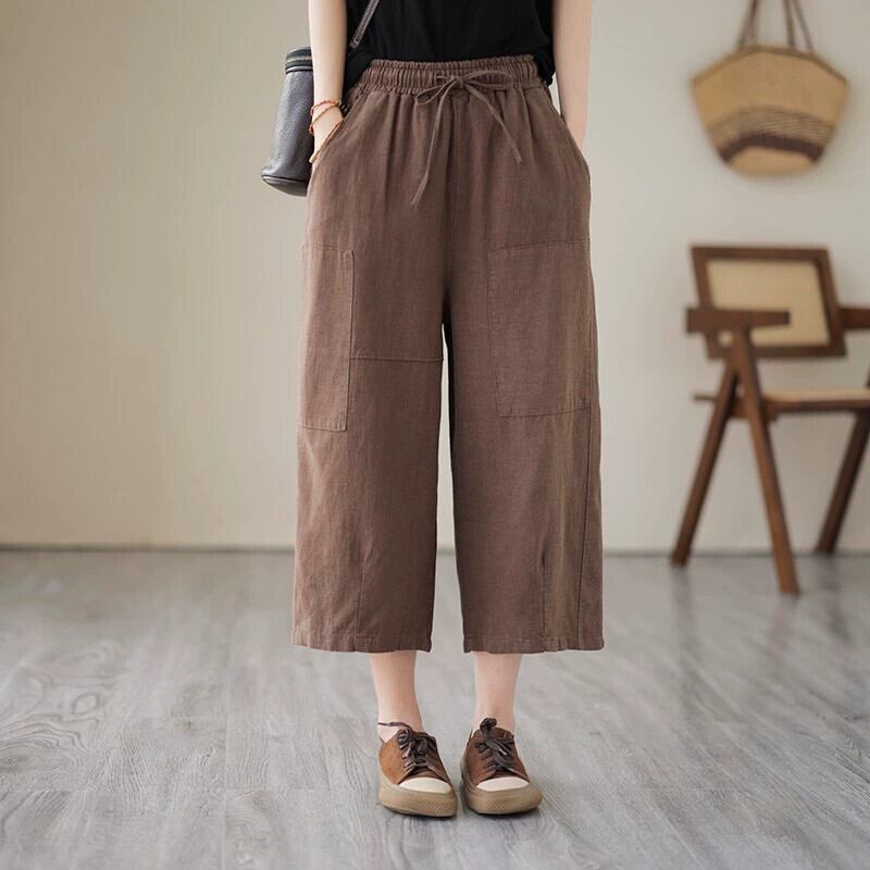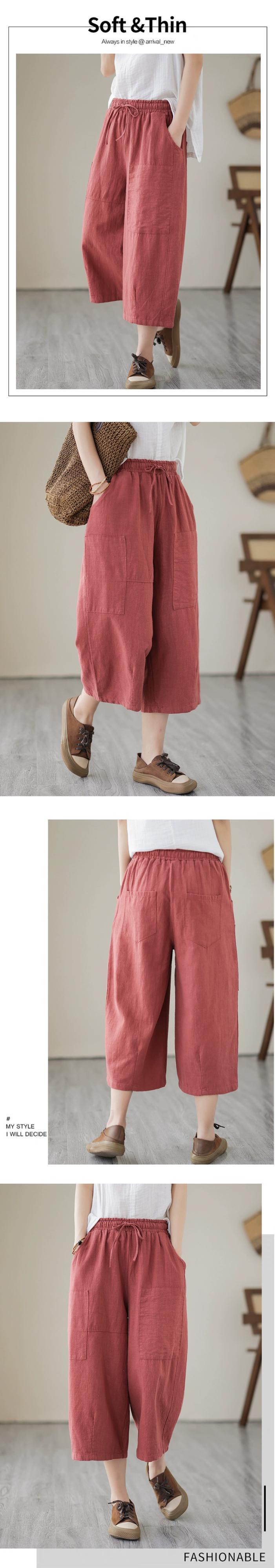 ディスカウントストアショッピングモールレトロリネンカジュアルクロップドパンツ女性夏ルーズストレートコットンとリネンワイドレッグパンツ サマー 夏物 ワイドパンツ sine3242799879