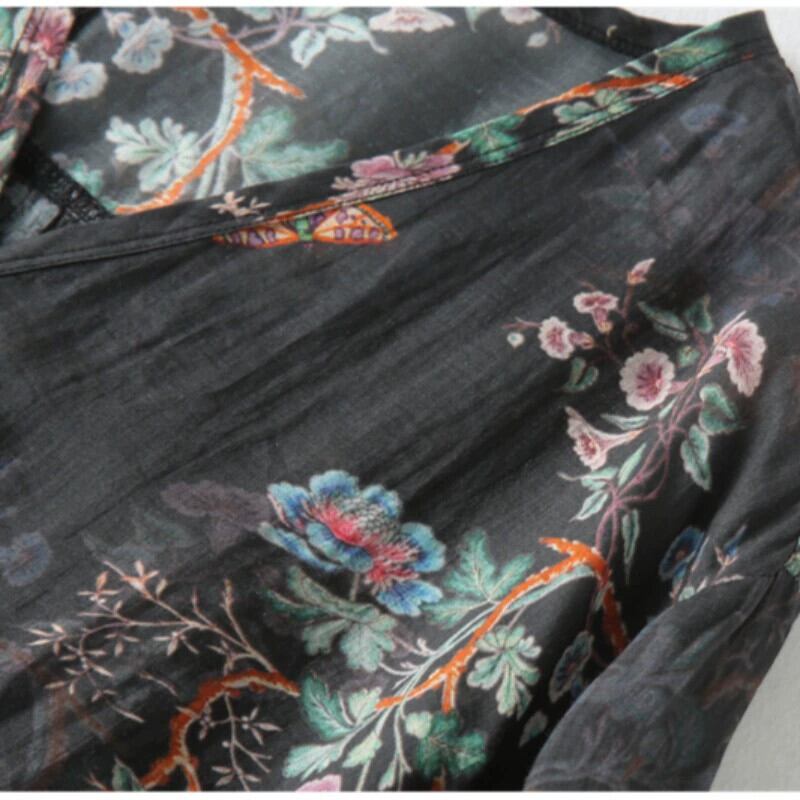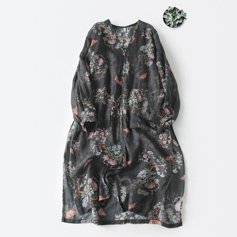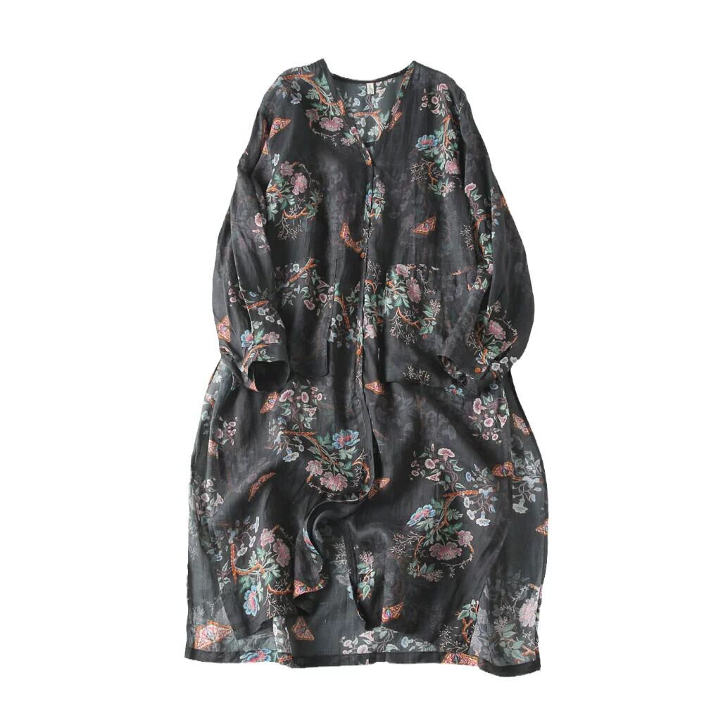 ディスカウント ストア ショッピング モールの女性のレトロなラミー プリント ローブ ルーズな大きいサイズの V ネック コットンとリネンのドレス 大きめサイズ Vネック sine9229566914