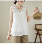 キャトルクリアランス 高級品 綿麻 刺繍キャミソール レディース インナー 薄手リネン ノースリーブ トップス 夏 レッド コットン サマー 夏物 sine71700350696
