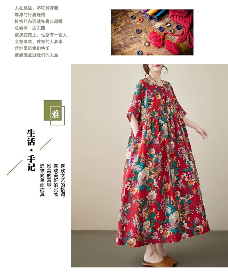 Eign Trade 輸出ブランドテールグッズレトロコットンとリネンのドレスの女性のゆったりとした大きいサイズのライトリネンの膝上のロングスカート 大きめサイズ sine65156818758
