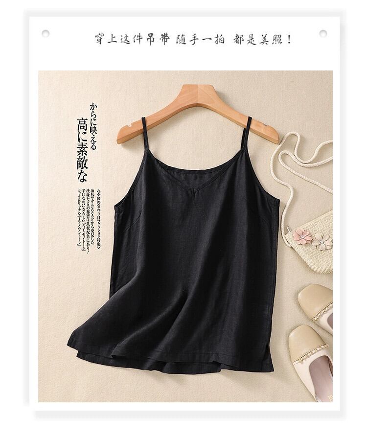 eign trade counter brand テールグッズ ese 綿とリネンの小さなキャミソール女性のゆったりとした軽いインナーリネンノースリーブトップ コットン sine58070676078