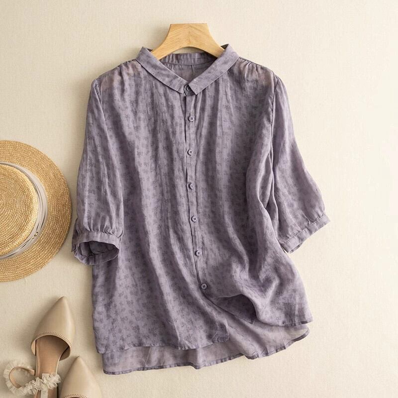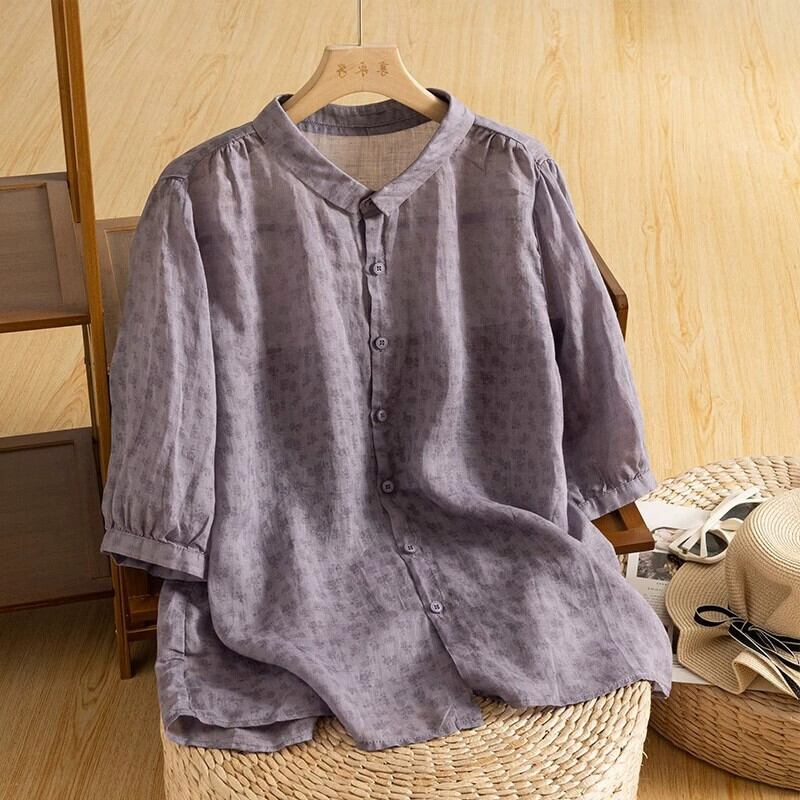モールビッグネーム撤退最後の在庫レトロラミーフローラルシャツレディースルーズライトリネン半袖トップ夏 サマー 夏物 花柄 sine54113349240