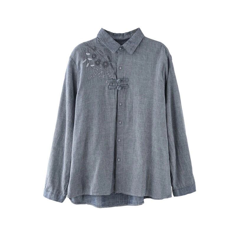 ディスカウント ストア ショッピング モール撤退中国風のレトロなボタン付き綿とリネンのシャツの女性の緩い刺繍リネン ラペル トップ レッド コットン sine21948413441