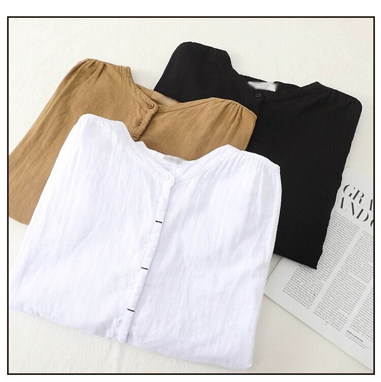 永貿易輸出有名テール商品撤退シンプルな綿とリネン長袖シャツレディースルーズカジュアルリネンプルオーバートップ秋 ロング コットン オータム 秋物 sine67936132979