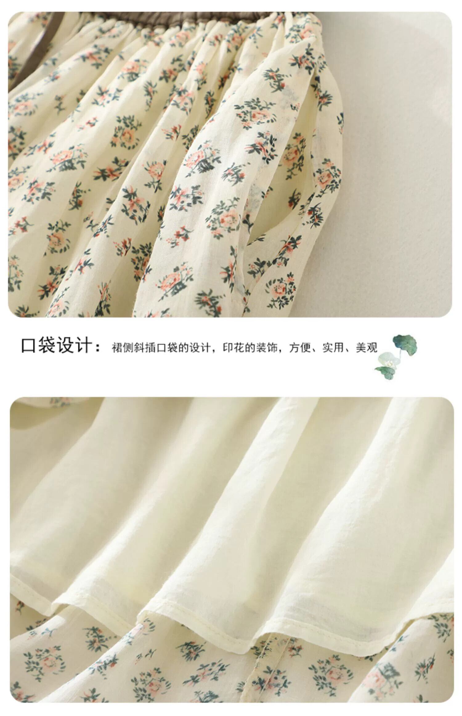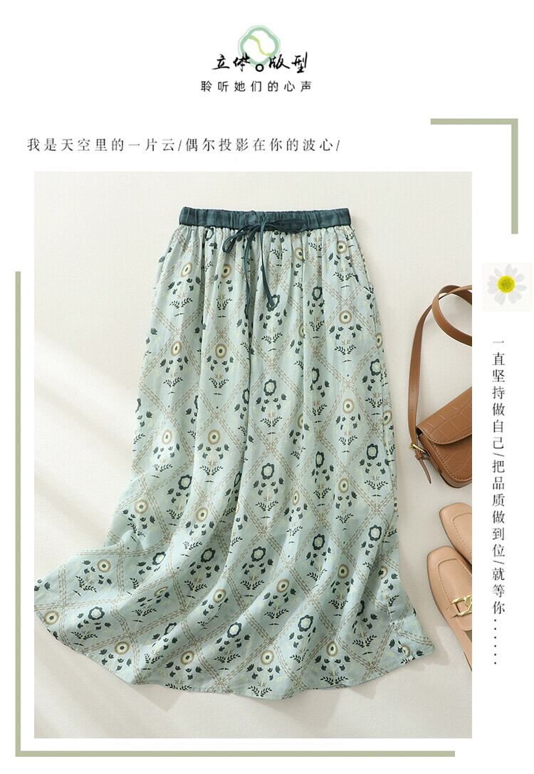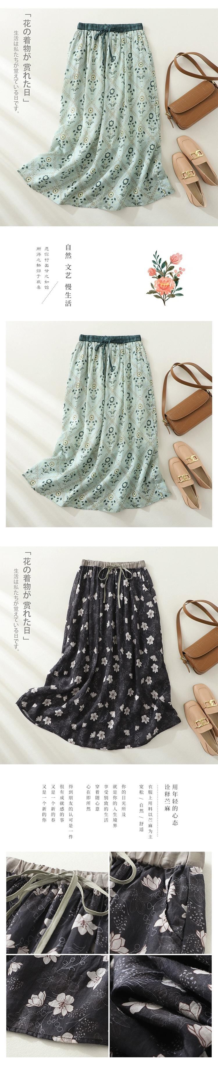 クリアランス クリアランス カウンター 牛グッズ 撤去 レディース レトロ 花柄 ラミー スカート 薄手 ウエストゴム リネン Aライン スカート エラスティック 伸縮 sine1101438114