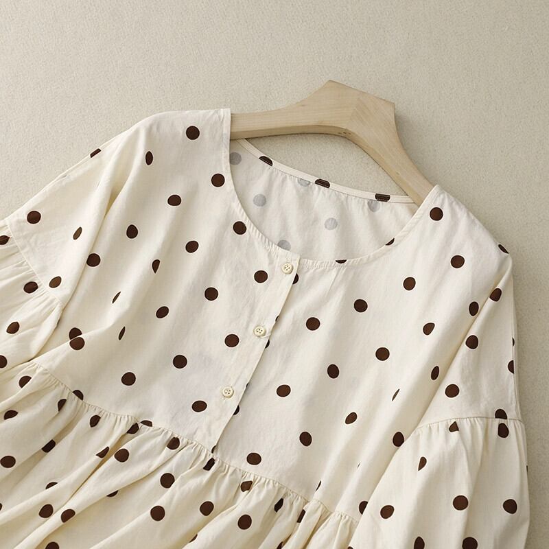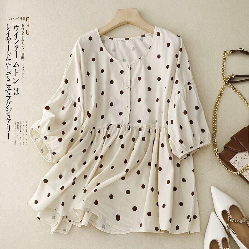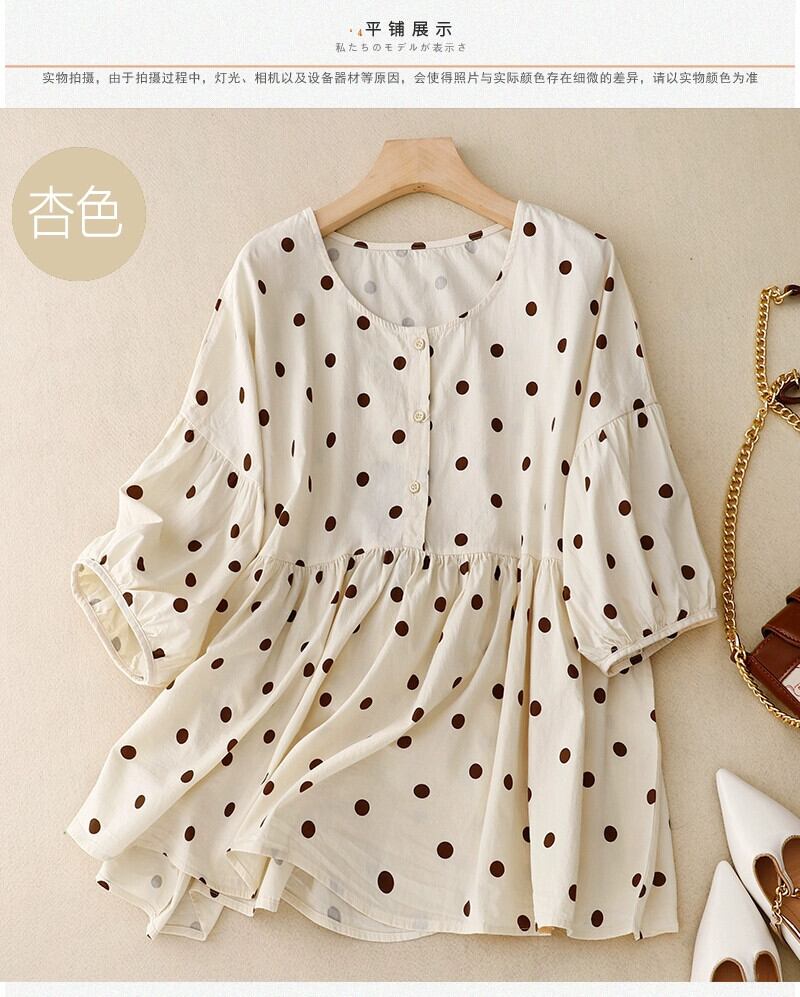 クリアランスカウンター最後の在庫 ese スタイルポルカドットベビードールトップルーズカジュアルリネン半袖シャツ女性 sine98546763285