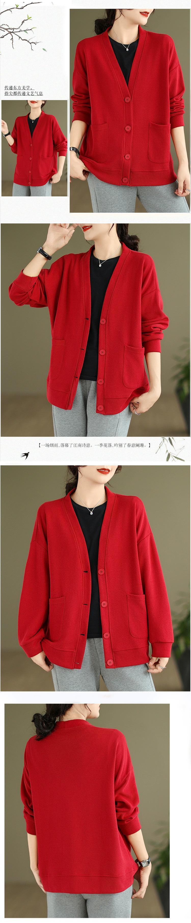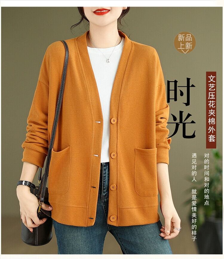 eign trade ese オリジナルシングルビッグネーム撤退無地多用途カーディガントレーナー女性ルーズカジュアル V ネックアウターショートコート Vネック ソリッドカラー sine50620492461