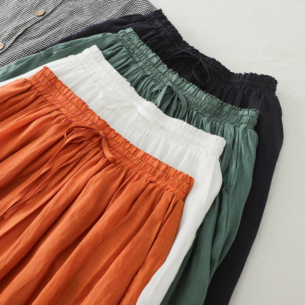 クリアランス カウンターが削除されました ビッグエンド在庫 ラミー ホワイト スカート レディース ウエストゴム ドレープ リネン A ライン ロング スカート エラスティック 伸縮 Aライン sine87193173931