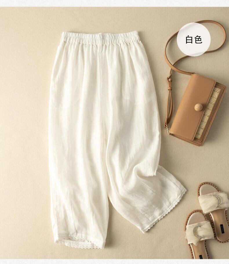 eign trade ese オリジナルハイエンドブランドレトロレースエッジ綿とリネンハーレムパンツ女性カジュアルハイウエストリネン 9 ポイントパンツ コットン sine42081965179