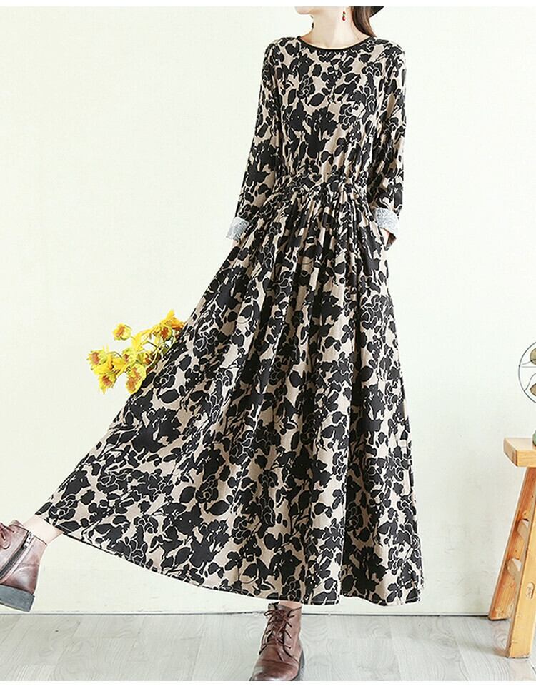 モールビッグネーム撤退最終在庫レトロプリント綿とリネンのドレス女性のハイウエストスリムリネンロングスカート ハイウェスト コットン sine98220710705