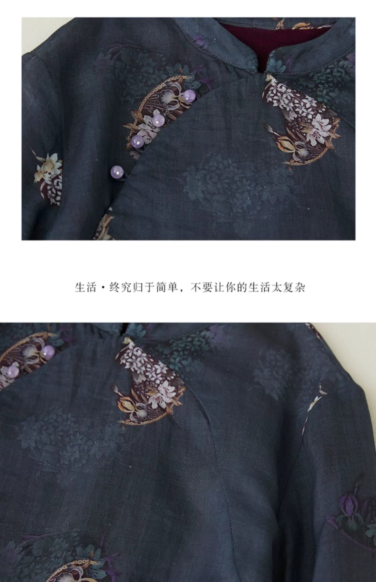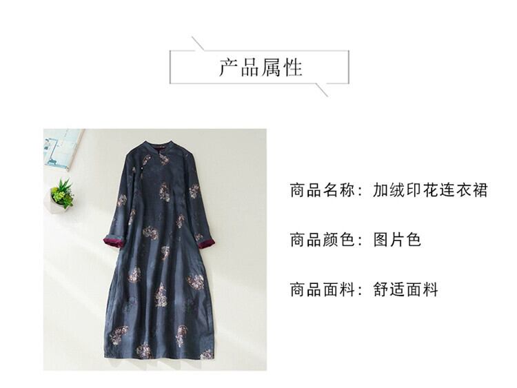 クリアランスクリアランスカウンター牛商品除去中国風プリント斜めラペルチャイナドレスルーズプラスベルベット肥厚ドレス sine41392610222
