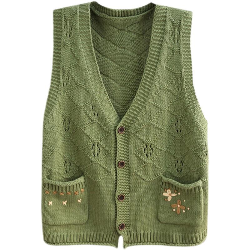 永貿易輸出ビッグブランド尾品撤退レトロニットカーディガンベスト女性のルーズ V ネックノースリーブベストセーター Vネック sine63278220377
