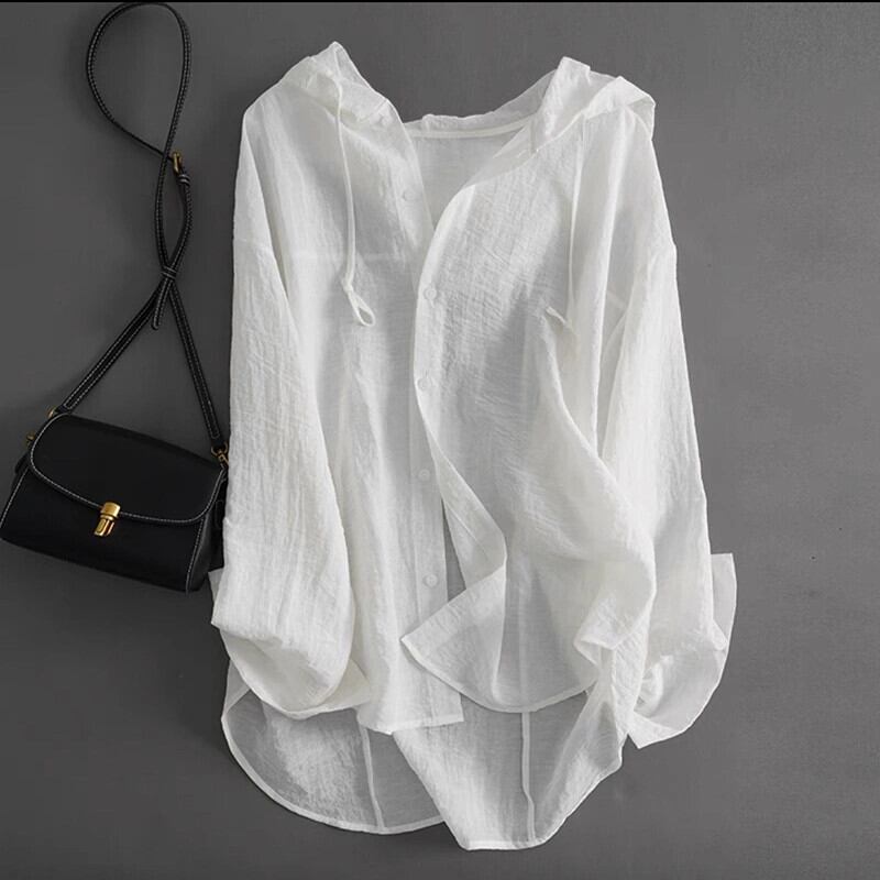 クリアランスブランド牛グッズカウンター最後の在庫夏の綿とリネンのフード付き日焼け防止ジャケット女性ルーズで軽いリネンシャツ コットン サマー 夏物 sine10546764278