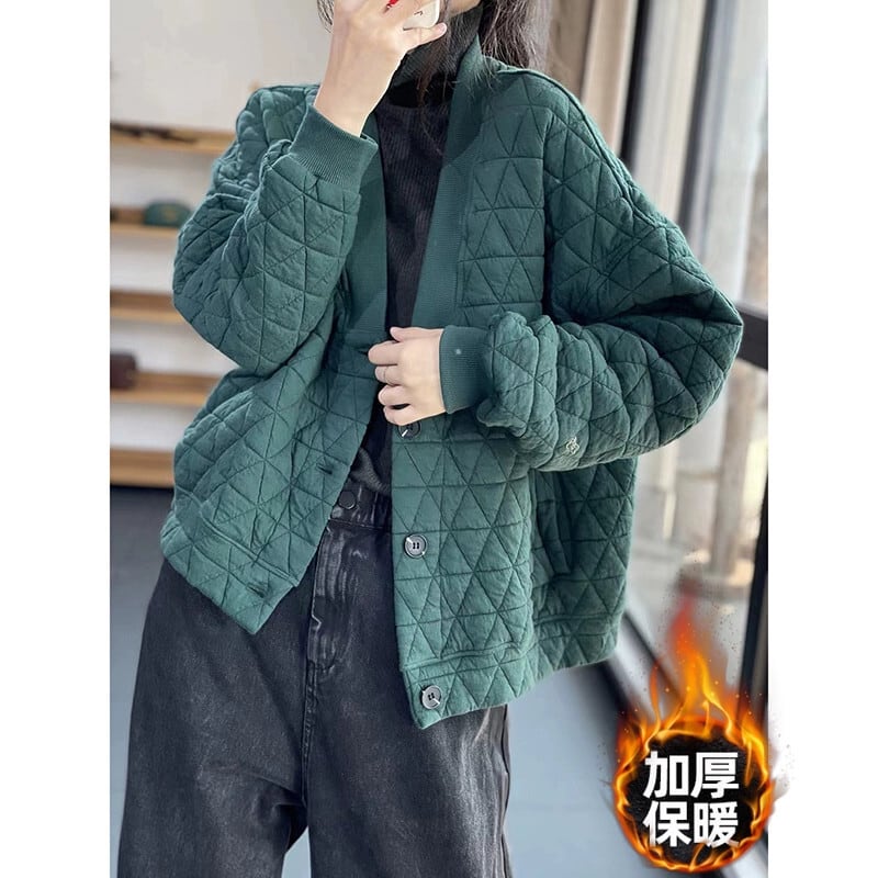 ディスカウントストアショッピングモールの女性のレトロ菱形 V ネックコットンジャケット緩い肥厚暖かい長袖コットンコート ロング Vネック sine73190270871