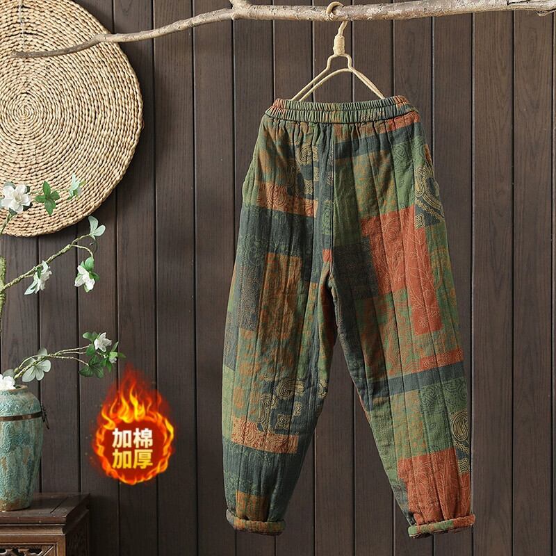 eign trade counter ブランドテールグッズキルティング肥厚暖かい綿パンツ女性レトロ弾性ウエスト痩身カジュアルハーレムパンツ コットン エラスティック 伸縮 sine4288134150