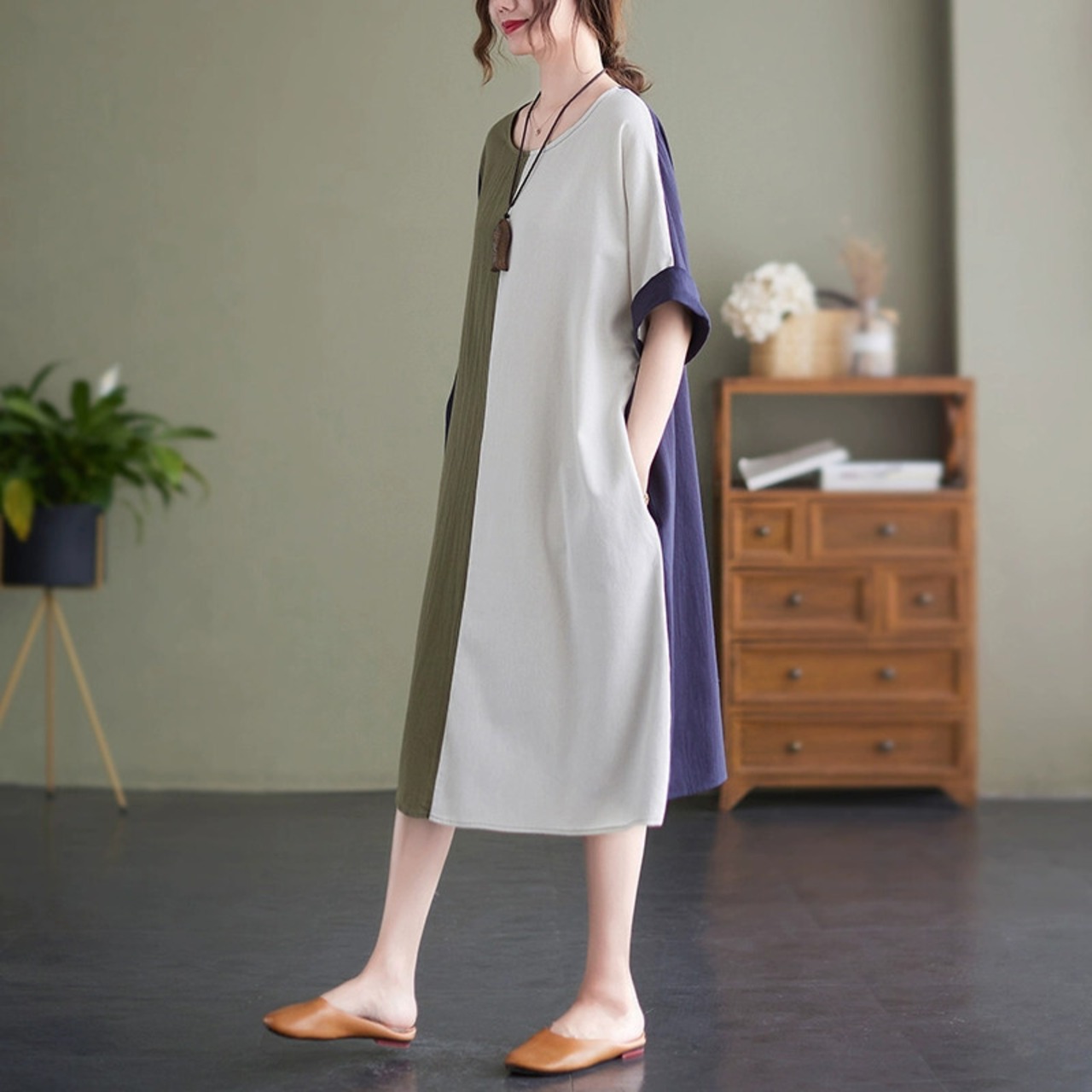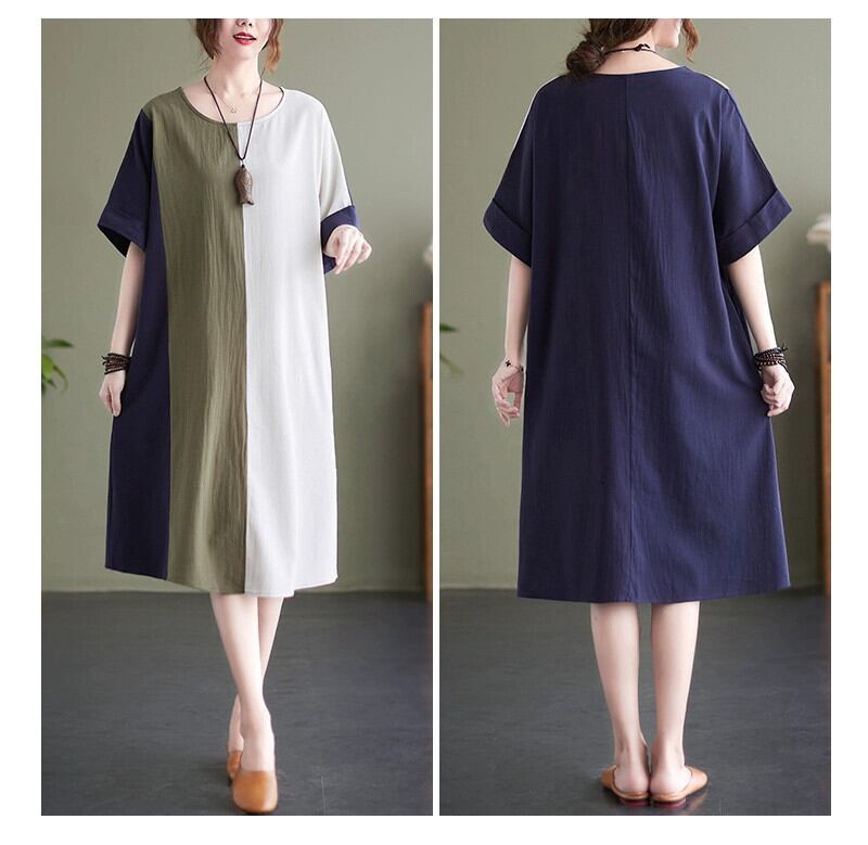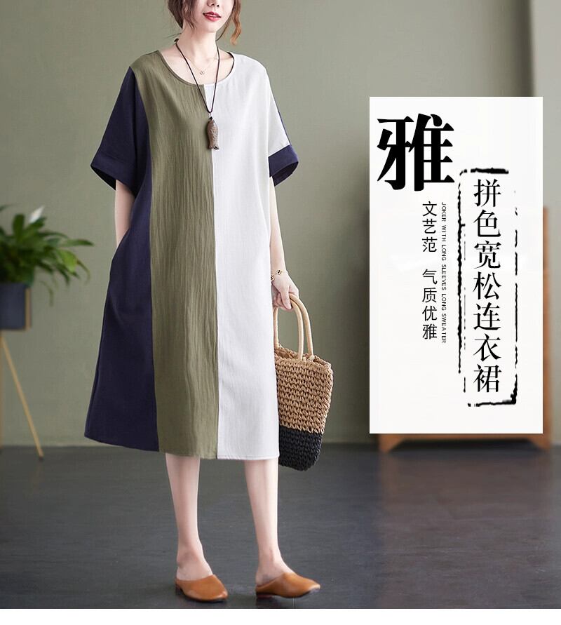 クリアランスブランド牛グッズカウンター最終在庫コントラストカラースプライシングコットンとリネンドレスレディースアーティスティックルーズリネンAラインロングスカート sine96560277740