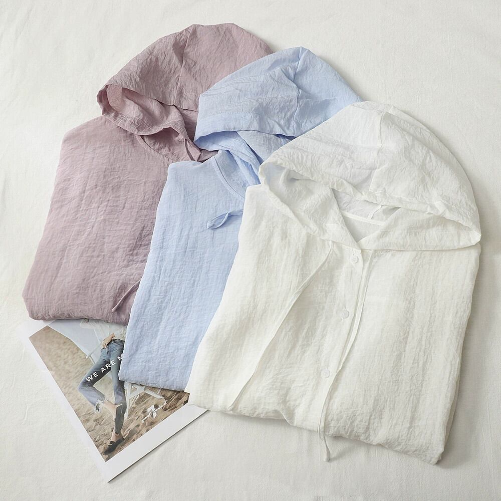 ピックアップリーク〜特別なカウンターグッズフード付き日焼け止めカーディガントップレディースソリッドカラールーズカジュアル空調シャツ長袖薄手ジャケット ロング sine26059581094