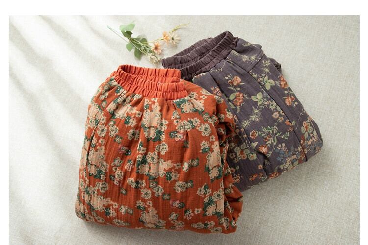 ショッピングモールクリアランスブランド婦人服アウター暖かいリネンブルマレトロ肥厚キルティングライトフローラルコットンパンツ レトロ ショーツ ブルマー 花柄 sine6195965863
