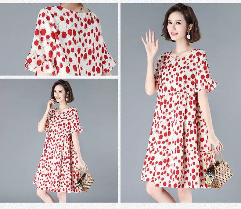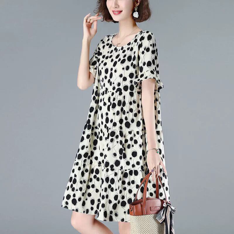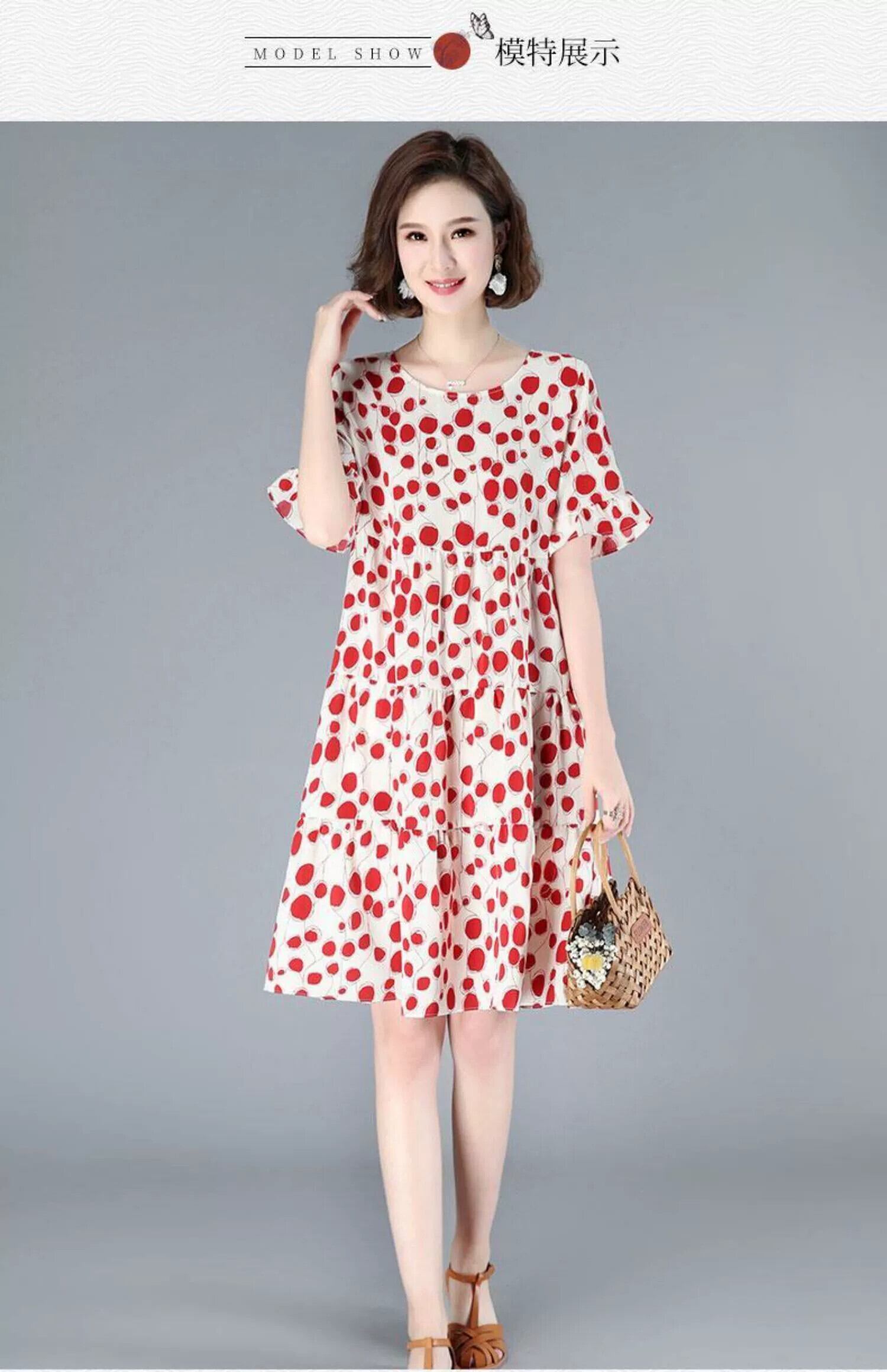 eign trade counter brand テールグッズ 年齢軽減水玉シフォンワンピース レディース ゆったり着痩せ 半袖水玉 Aラインスカート sine76943523717