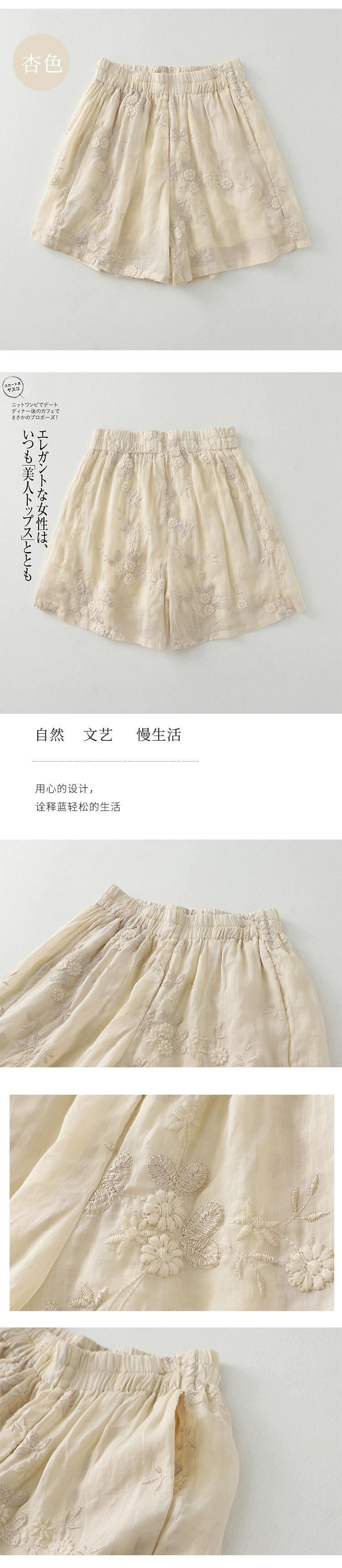 クリアランスリーク ~ カウンター最後の在庫レトロ刺繍コットンとリネンのショートパンツ女性ハイウエストカジュアルリネン A ラインワイドレッグ 5 クォーターパンツ レッド ショーツ ブルマー Aライン sine86628590637