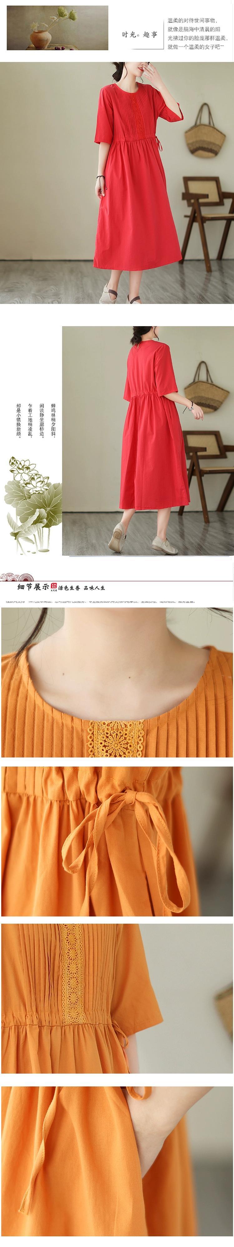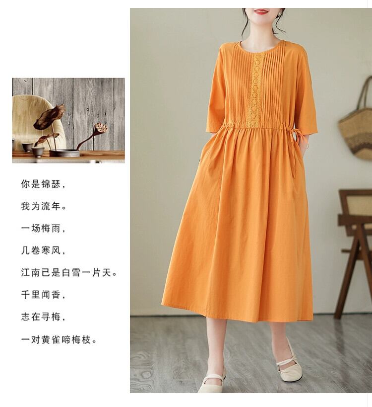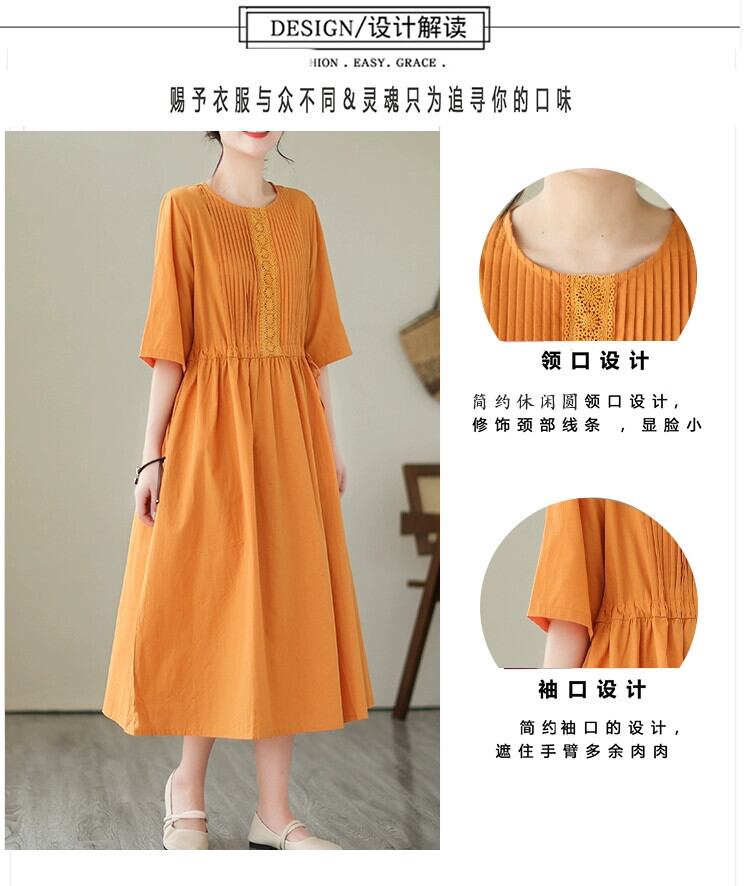 カウンタークリアランスクリアランスレディースコットンとリネンアコーディオンプリーツドレスルーズでスリムなリネン半袖ミドル丈スカート sine8206608172