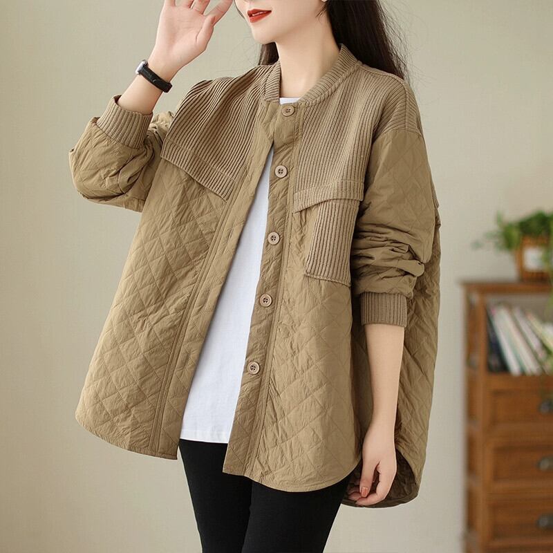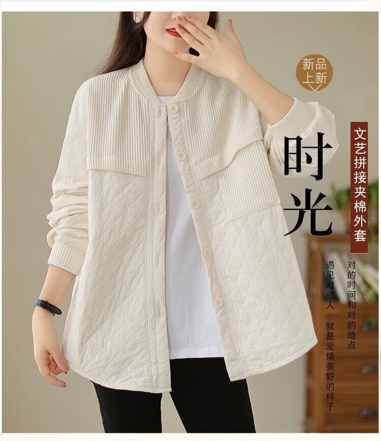 Eign Trade Export Big Tail Goods キャビネットから撤収レトロスプライシングニットベースボールジャケット女性のルーズスタンドアップカラーコットンコート sine6969358240