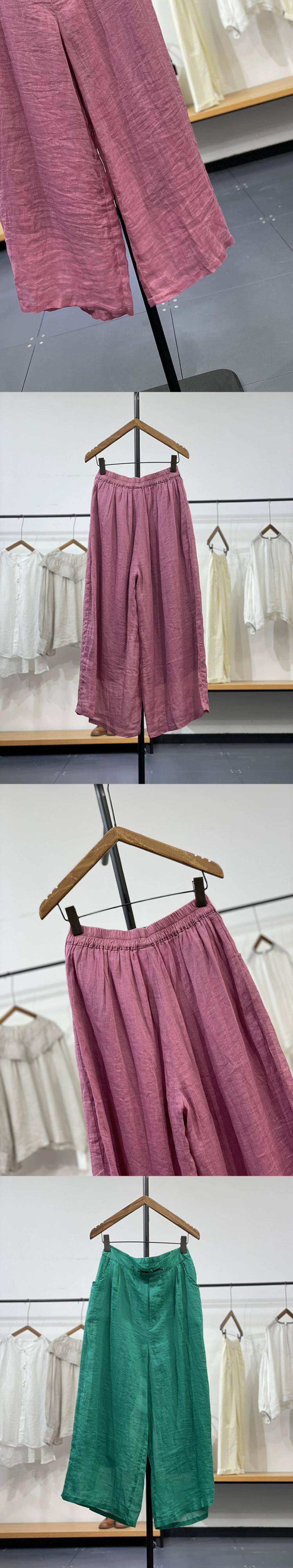 クリアランスカウンター、ビッグブランドテールグッズ、レトロ二重層ラミー9点パンツレディース、カジュアル弾性ウエストリネンワイドレッグパンツ エラスティック 伸縮 sine5938116682